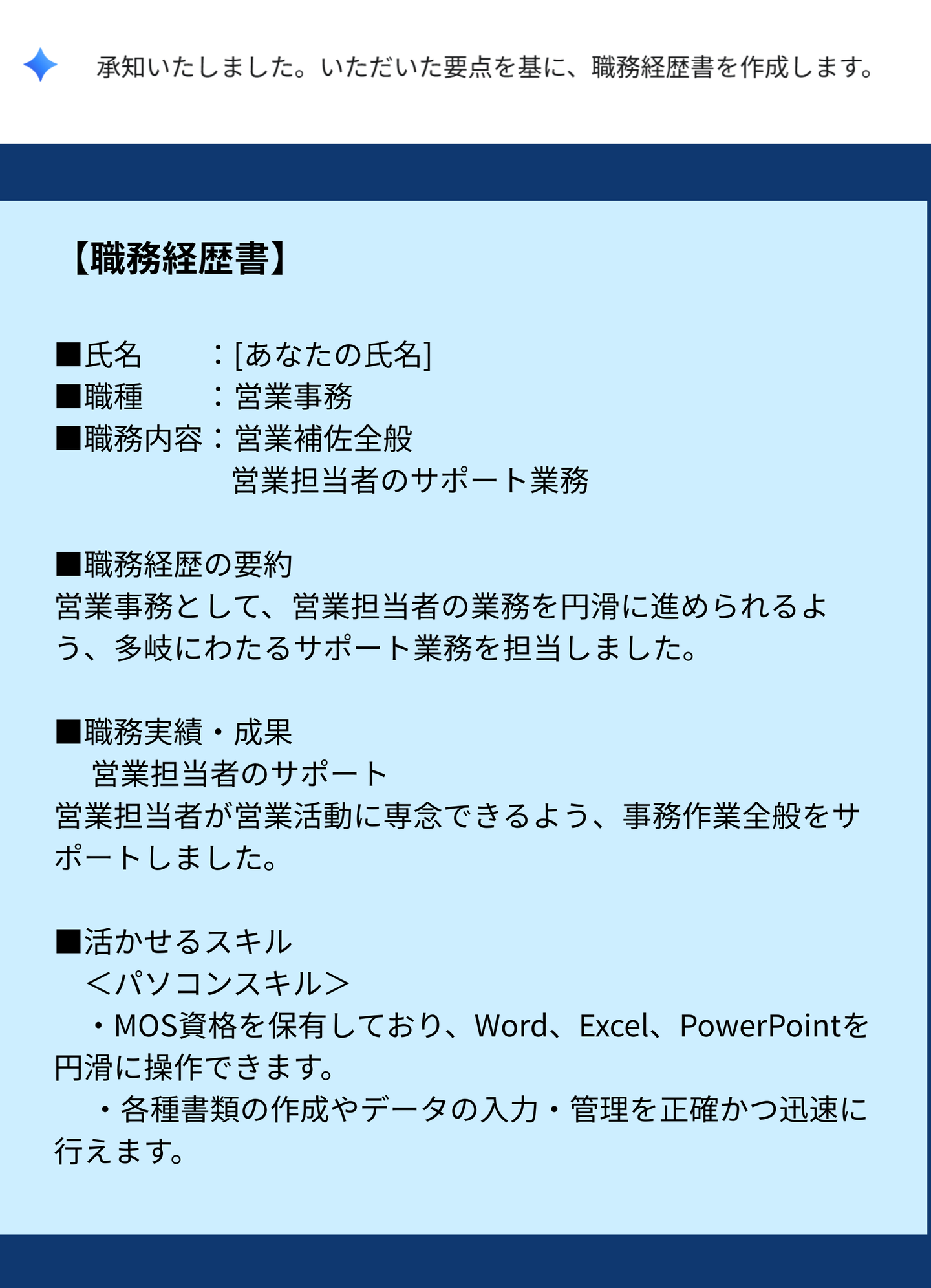 実はGeminiさん、求職活動でも強~い味方になってくれるのです…!💖