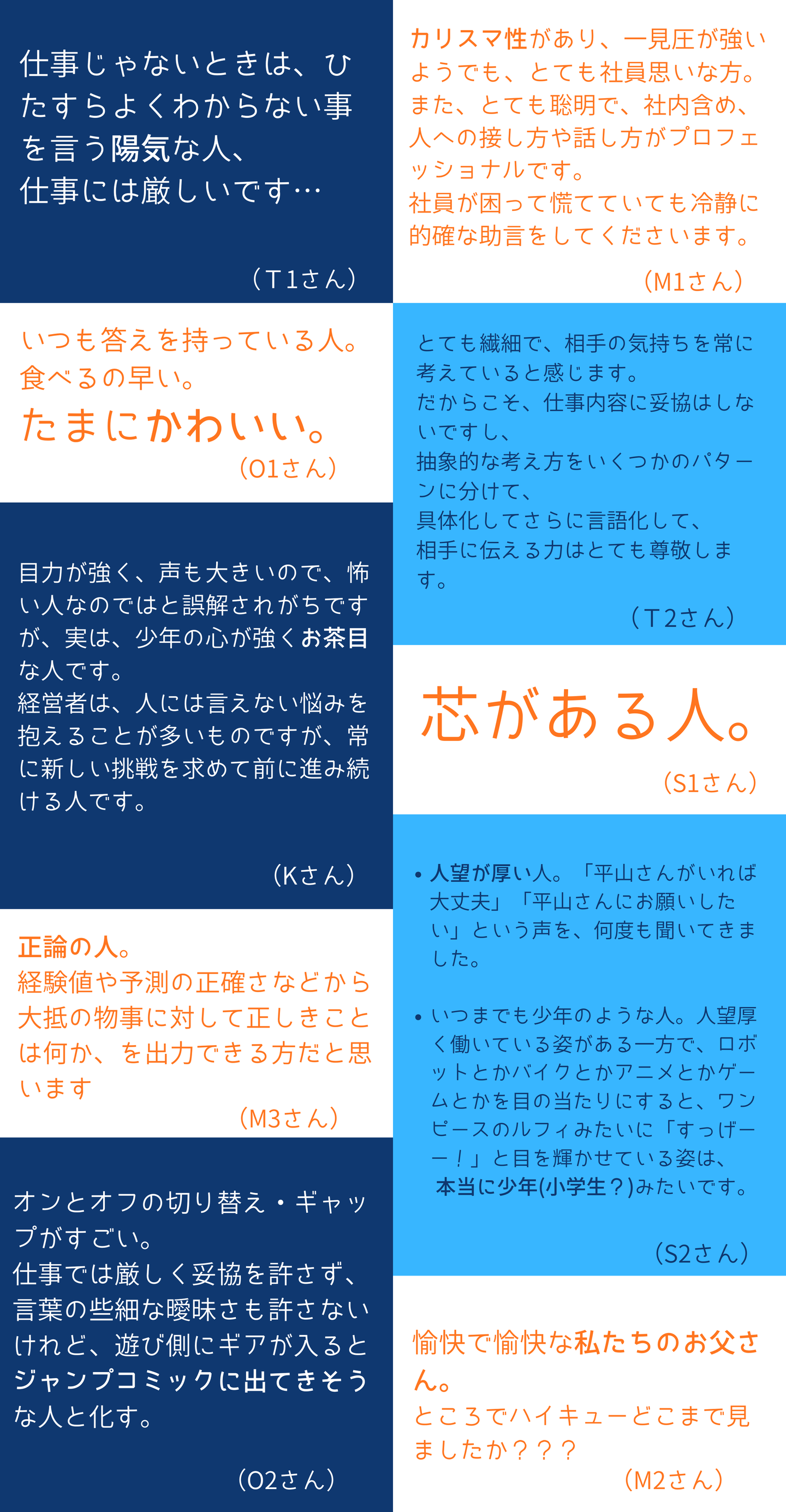 みなさんの回答に、どこか愛がにじみ出てますね、社長😊💞