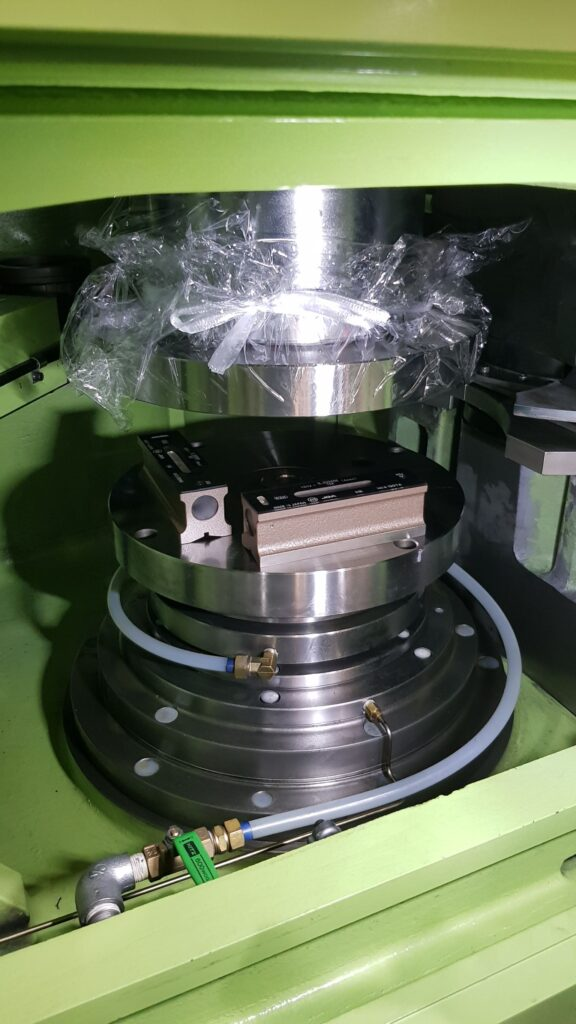 水平器を使い機械が水平に設置できているかを確認します。