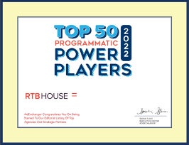 最先端のデジタルマーケティングテクノロジーを各広告主様や広告代理店様などに提供するRTB Houseは、AIのディープラーニングベース(深層学習)の会社として「AdExchangerの2022プログラマティックパワープレイヤーズTOP50」に選出されました。