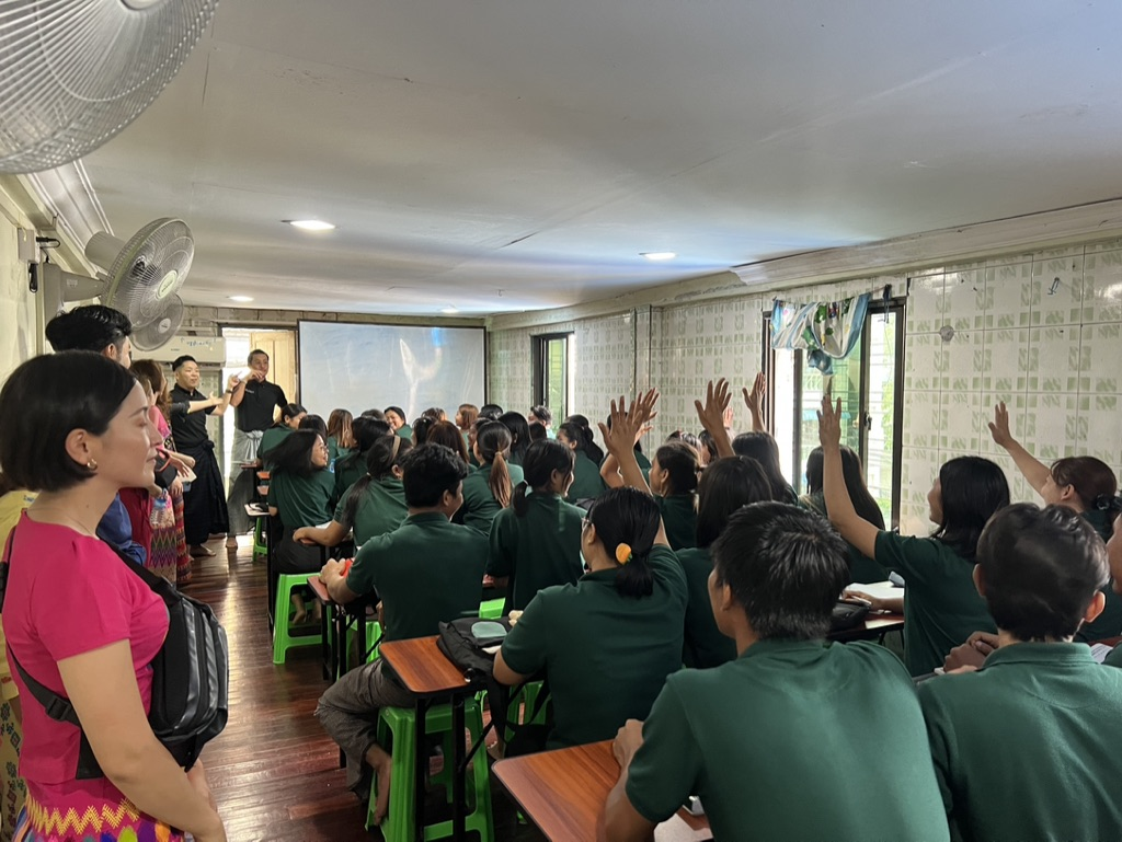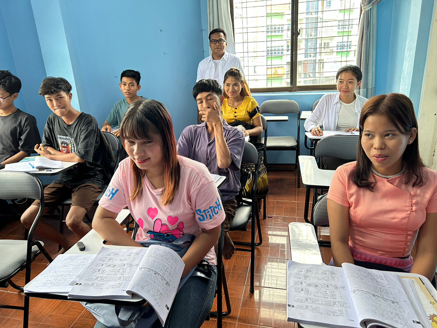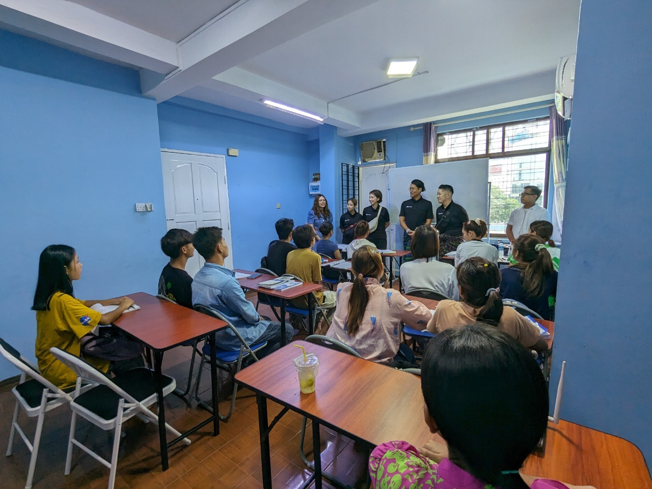 ヤンゴン市内の活気溢れる通り沿いの建物の中に、これまた活気溢れる生徒さんたちが集まって日本語を勉強していました。