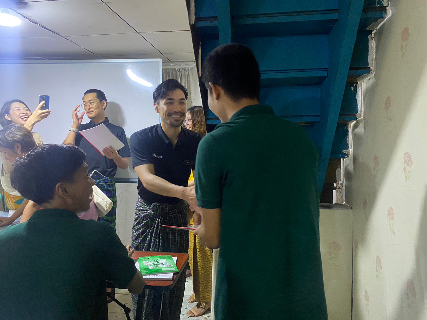 受け入れ側であるFuntocoメンバーも、生徒想いのチョさんとのお話しで感じるものが多くあったようで、今回のミャンマー出張での印象的な場面でした。