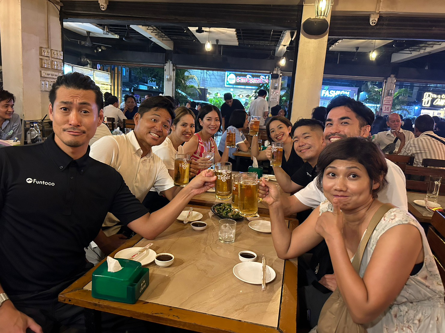 そして夜は、ミャンマー出張に行くと必ず訪れるというFuntoco御用達のレストランにてみんなで乾杯!