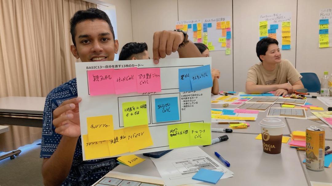 このワークの最後では全体を4つのグループに分け、各グループ内で自分の13個のカードを共有し、ディスカッションを行いました。自身について発信することはもちろん、各メンバーに対してその人が認識していない特徴(強み)や、こんな特徴も持てたらもっと良くなるのではというフィードバックもグループ内で行っていきました。