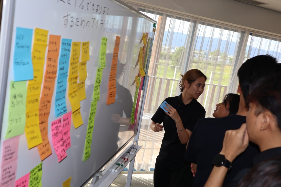 お題はポジティブなものもあれば、会社の困難や課題に向き合うというシビアなお題もあり、適度な緊張感が漂いながら研修が進んでいきます。