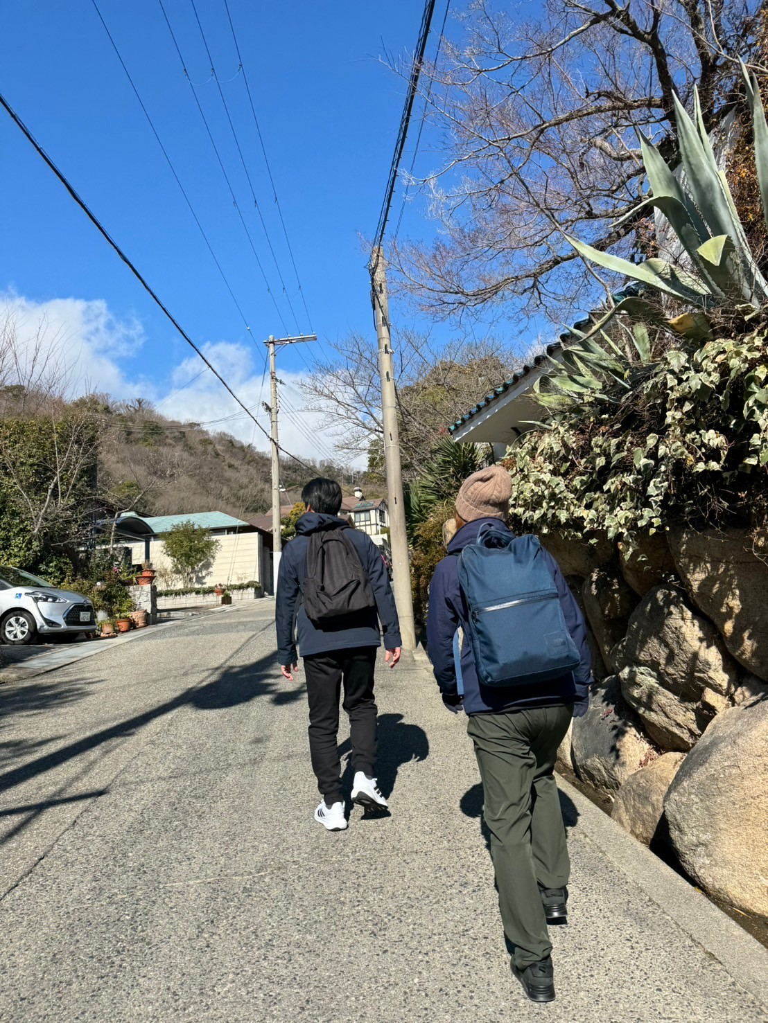 スタートしてからはアスファルトの道路をひたすら歩きます。ちょっと高級住宅街の風景が続くので静かに歩きましょう!急ではないですが、斜面がつづくので少し登山っぽいです🌸