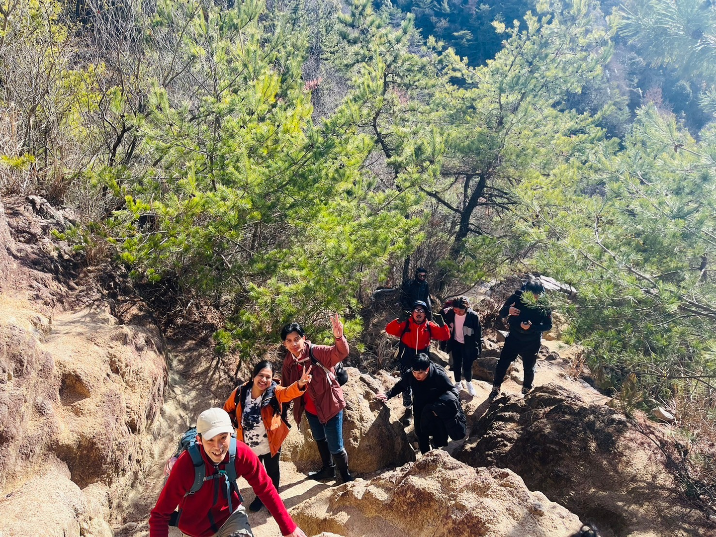 いったん山頂を少しおり、休憩施設で軽食をとって下山準備!ここでカップラーメン食べてる人とか結構いましたね🍜。トイレも綺麗です!下山中は下るスピードがはやくて写真をとる暇もなかったです。足を踏み外すとこけちゃいますので、最後まで集中力を切らさずに下山してください。