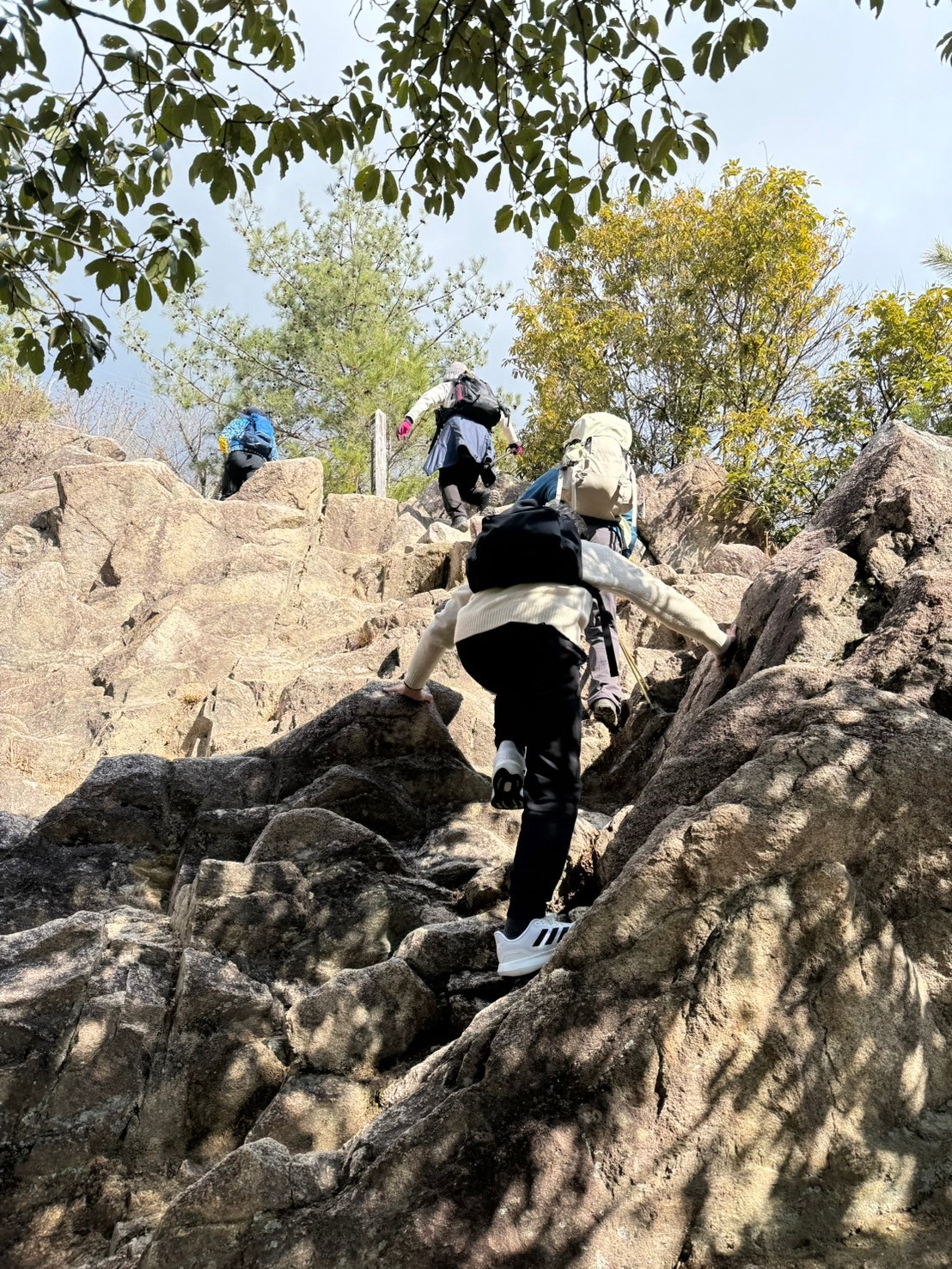 実は最初から結構急です💦いきなり体力を奪われていきます。初めての方はストレッチした方がいいです。あと、服装は着脱しやすいのがおすすめです!最初はいきなり熱くなります。山頂の方は気温が低いので大丈夫ですが、最初は結構暑かったので、上着をリュックの中に入れておいて、もう少し軽装でもよかったと思っています。