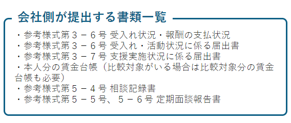 定期届出とは、3か月に1回の定期面談を行ったのちに、入国管理局に届けなければいけないものです。会社側が提出する書類一覧