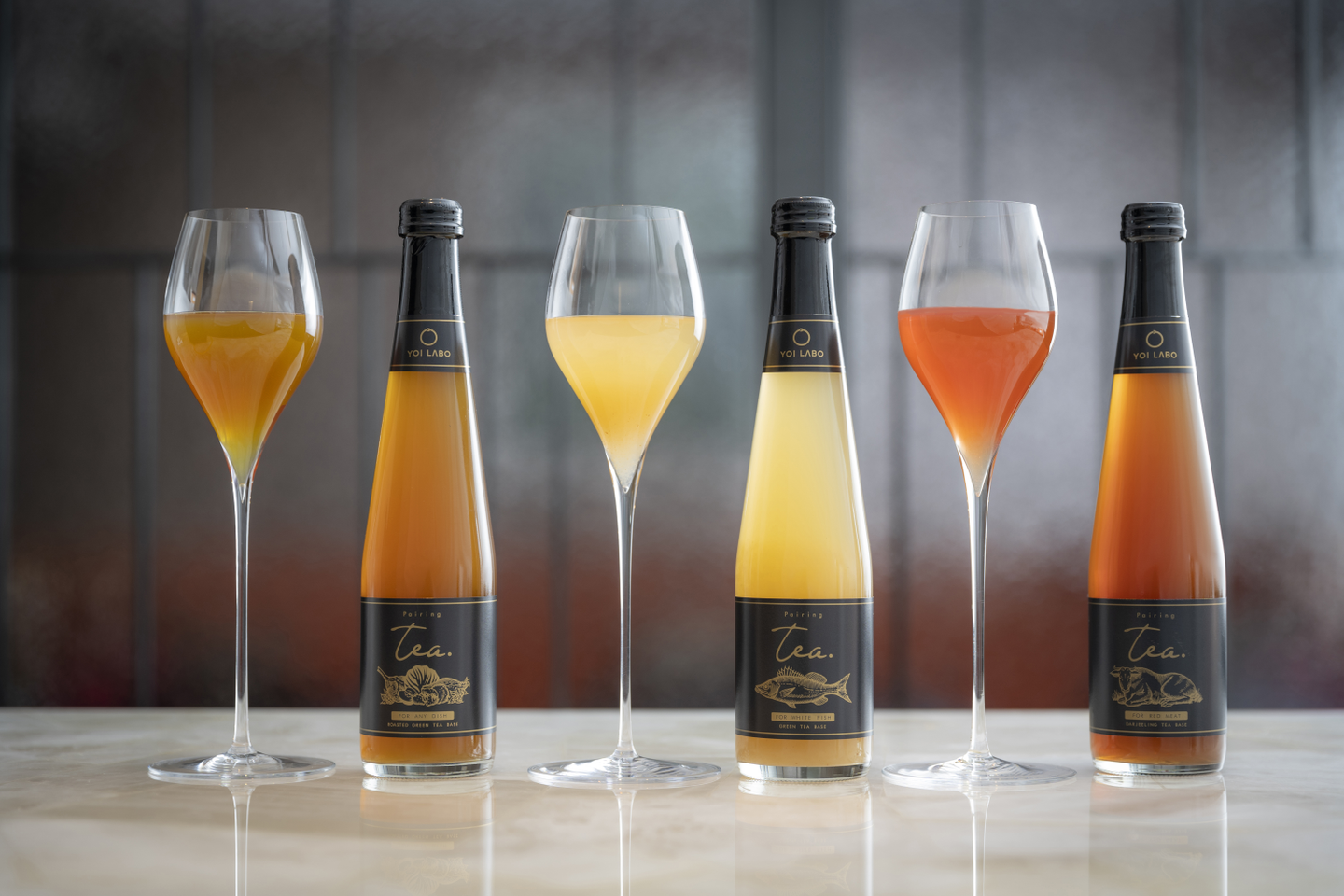 “FOR WHITE FISH” 別名:ポワールレモングラス 白身魚料理とのペアリングを想定し作られたポワールレモングラスは、清涼感を持つ釜炒り茶をベースにミネラル感のある洋梨ピューレをブレンドし、ジュースでもお茶でもない不思議で軽やかな味わいを実現。レモングラスとほんのり感じるスパイスの香りが、調和している一皿にさらなる深みを与え、料理のレベルを数段上に引き上げます。