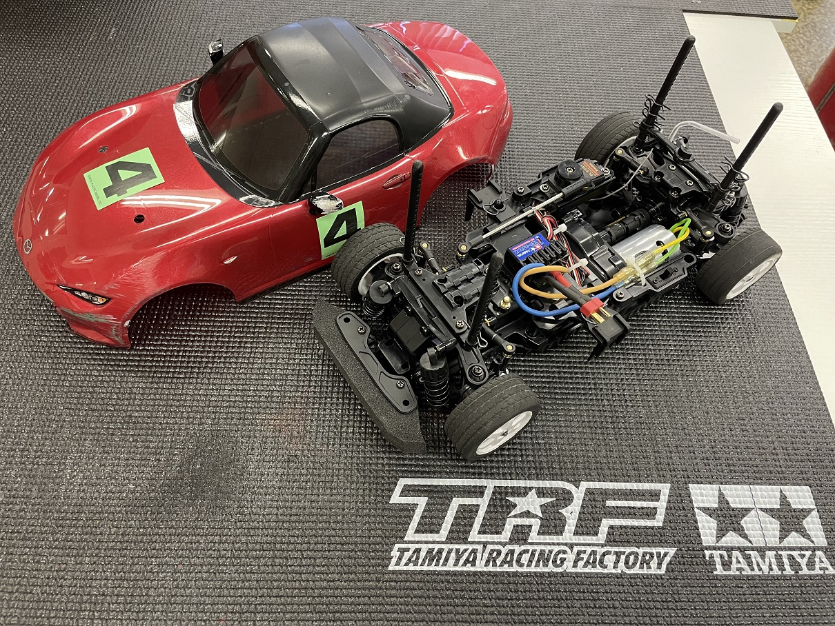 ▲戦いの傷跡残る優勝マシン(少しマニアックな話ですが、実車と同じ後輪駆動を採用しています)
