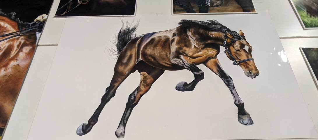 プライベートで乗馬も嗜む、馬を愛する社員による絵画は「好き!」が伝わってくる躍動感!