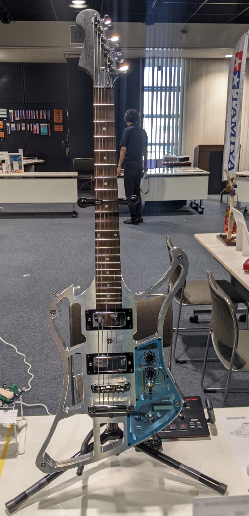 趣味で音楽を嗜む社員も多いですが、オリジナルギターを制作する社員も!演奏できる準備もしてもらい、音も含めて存分に発表の場としてもらいました。音楽そのものがクリエイティブな趣味ですが、自作楽器でも自己表現したくなってしまうのはモノづくりメーカーの社員ならではかもしれません。