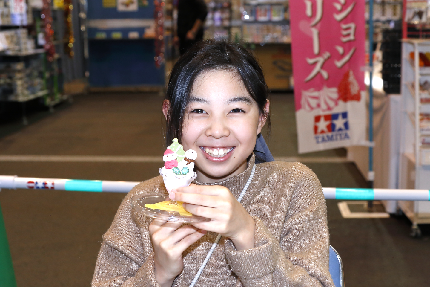 タミヤスタッフと一緒にクリスマスパフェやドーナッツリースを完成させました。完成した後、お客様からの「ありがとう!」のひと言やその笑顔でタミヤスタッフも幸せな気持ちになります。