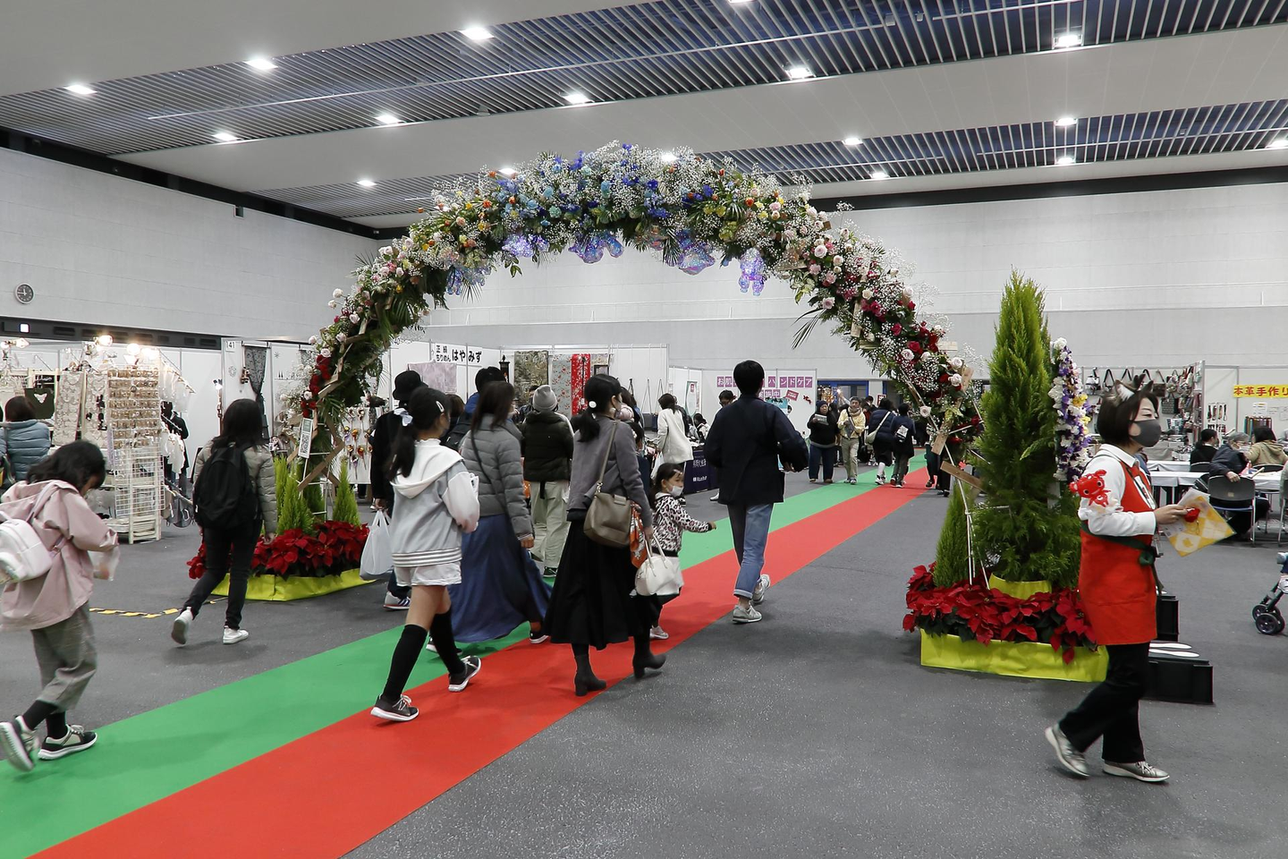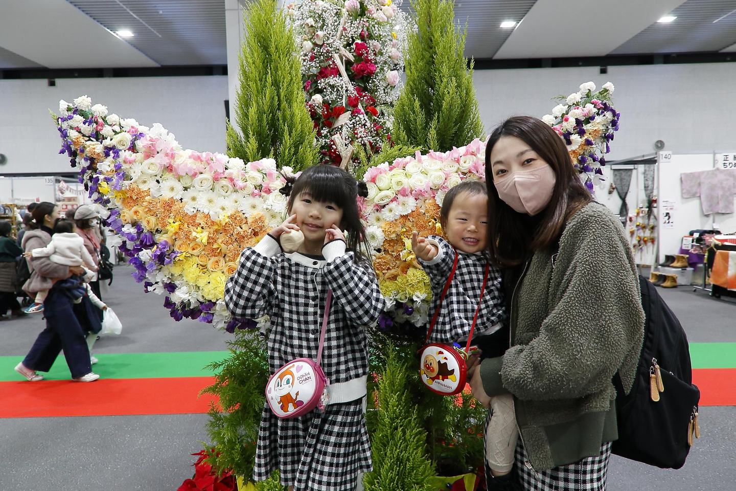 毎年圧倒されるシンボルツリーですが、今回のテーマは「はばたき」。来場者はアーチをくぐり、手づくりホビーの世界へGO!。アーチ型の横には粋な撮影スポットが・・・。撮影スポットの前に立てば、まるで羽が生えたよう。インスタ映えはバッチリです!