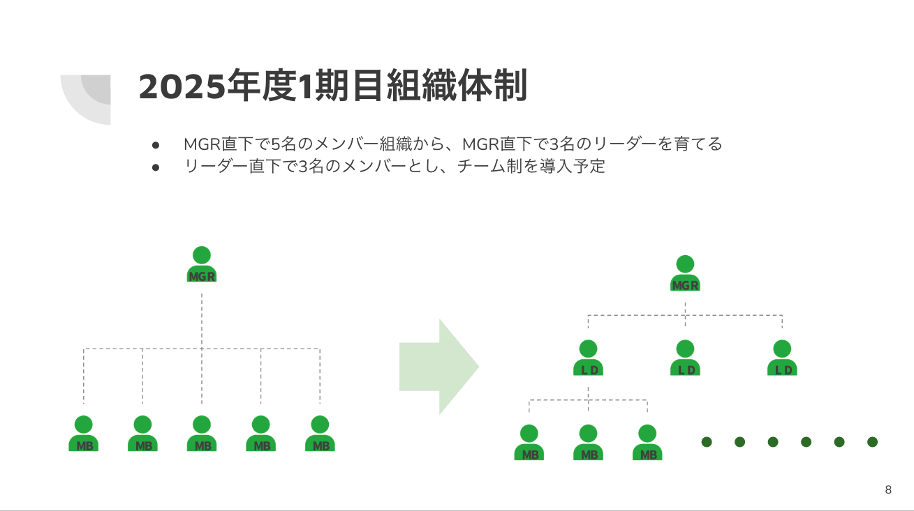左側が現状の組織体制です。マネージャー直下にメンバーが5名です。ここからメンバーを増やしていくとリーダーというポジションが出てきます。そこに私たちの組織風土「年齢、社歴、経験、性別全て関係ない」「成果をしっかりあげてくれた方にはどんどん仕事を任せる」というものが効いてきます。つまり、ポジションが早々に出来るのはもう見えているので、あとは誰がなるか。この組織風土を体現しているのが事業責任者のマネージャーです。マネージャーの彼は昨年の8月中旬に入社しています。3ヶ月ほどで責任者ポジションに着任してます。新人だから役職を狙うのが早い→Noです!上が詰まってポジションが空いていない→Noです!いくらでも早期に狙えるのがメリットだと思ってます!チャレンジしたい、成長したいと思っている皆さんからの応募をお待ちしています!