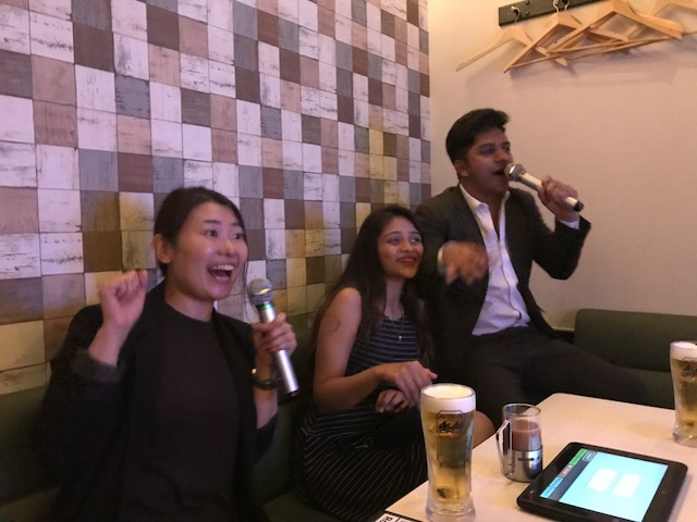 カレーで腹ごしらえした後は、彼らご所望のカラオケへ♪他の海外オフィスから社員が来日した時も、カラオケに行きたい!という希望が多いんですよね~カラオケは日本の立派な文化ですね!!