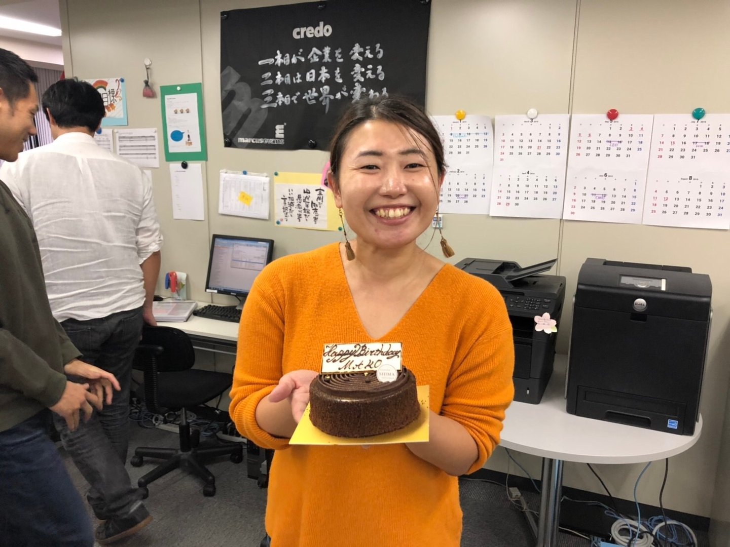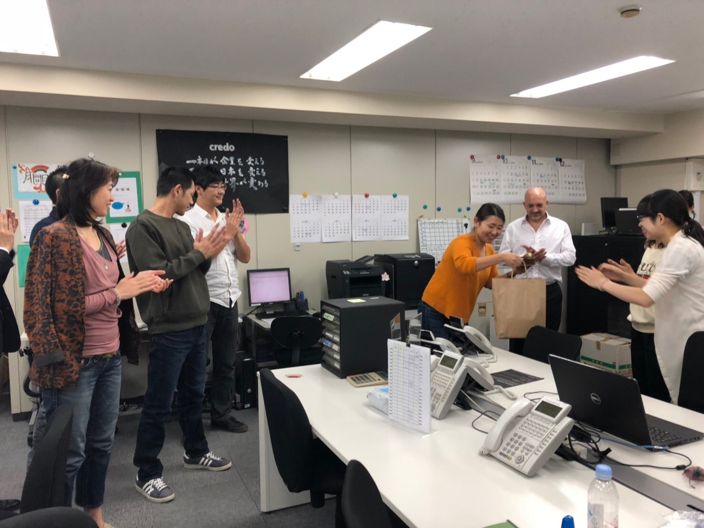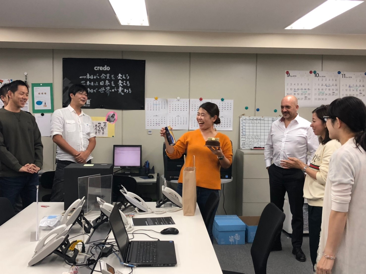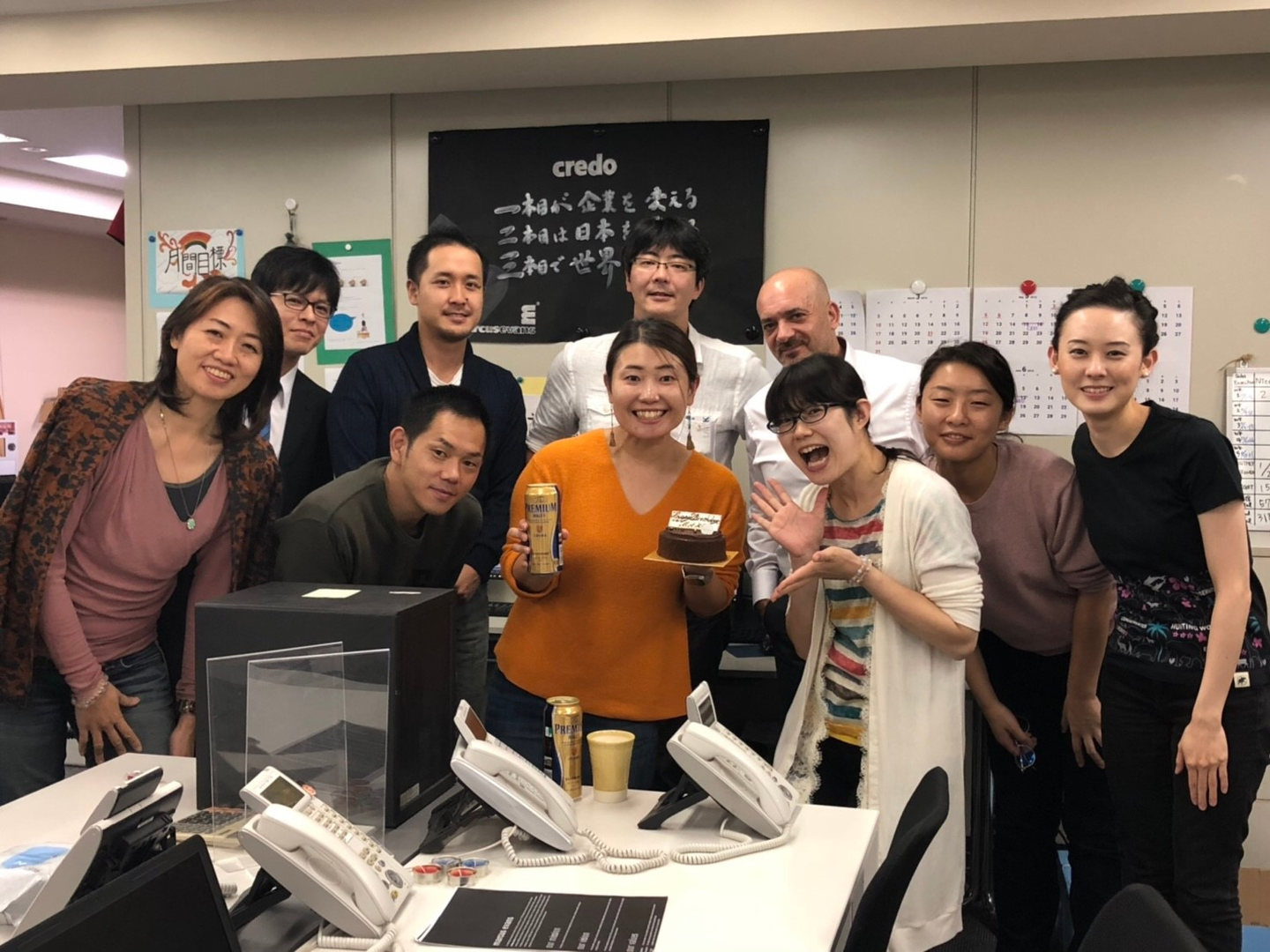 今日は終業後に、明日誕生日を迎えるスタッフのお祝いをしました!!こっそりバースデーカードを回してメッセージを書いたり、ばれないようにケーキを買いに行ったり、何がいいかな~??とプレゼントを選んだり…。今週は、普段ドイツに駐在しているCEOが月に一度の日本視察のためオフィスに来ていたので、いつもとちょっと違ったお祝いになりました(^-^)