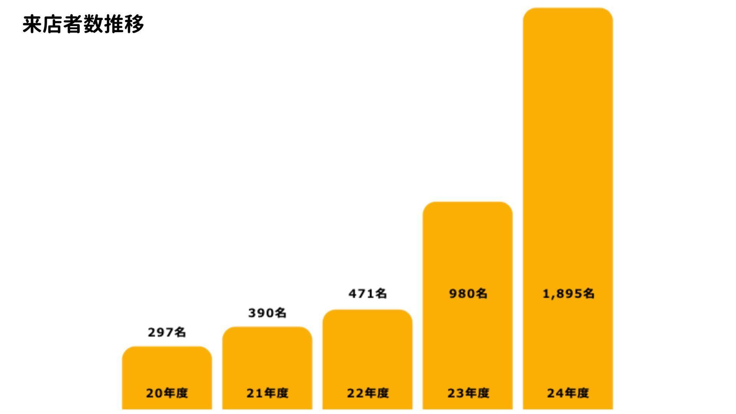 コロナ後の来店者数は大幅に増加し、2024年度には約2,000名が来店。また、インターンを活用した園訪問も増加し、2024年度は273名が参加しています。参加者は福岡県内の養成校を中心に、県外からも広がりを見せています。