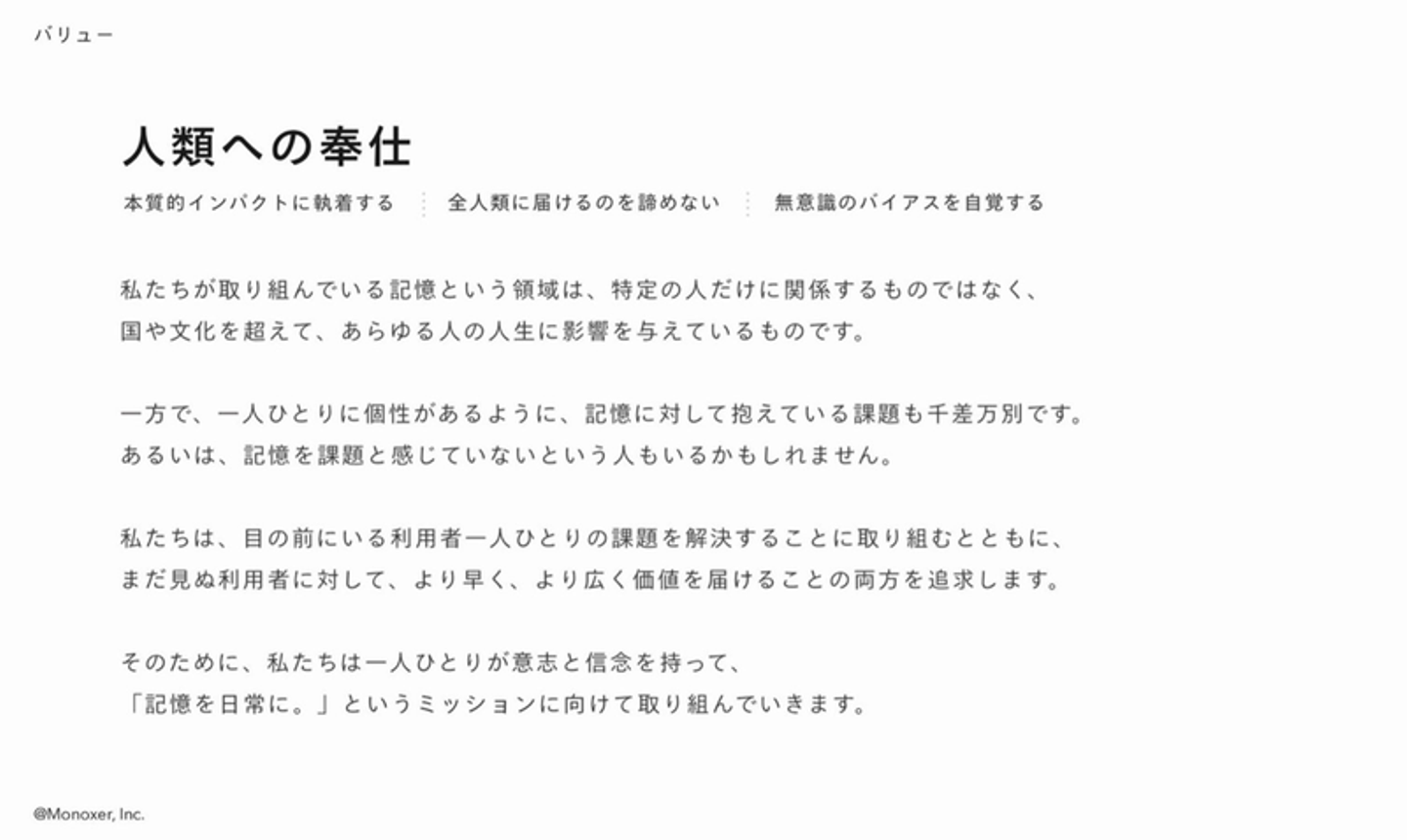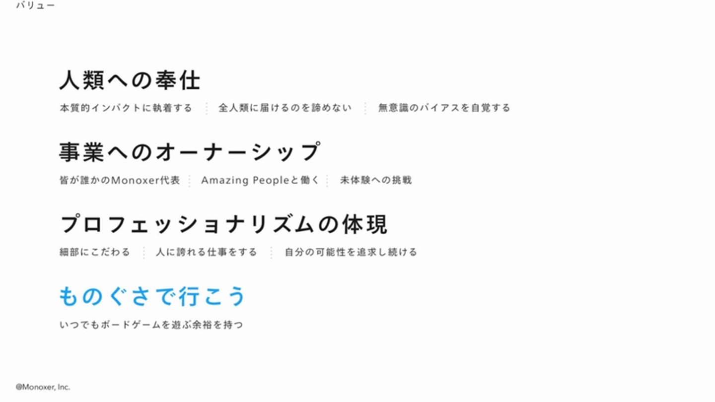 ーー モノグサとしての価値観・軸が、まさにバリューそのものなんですね。