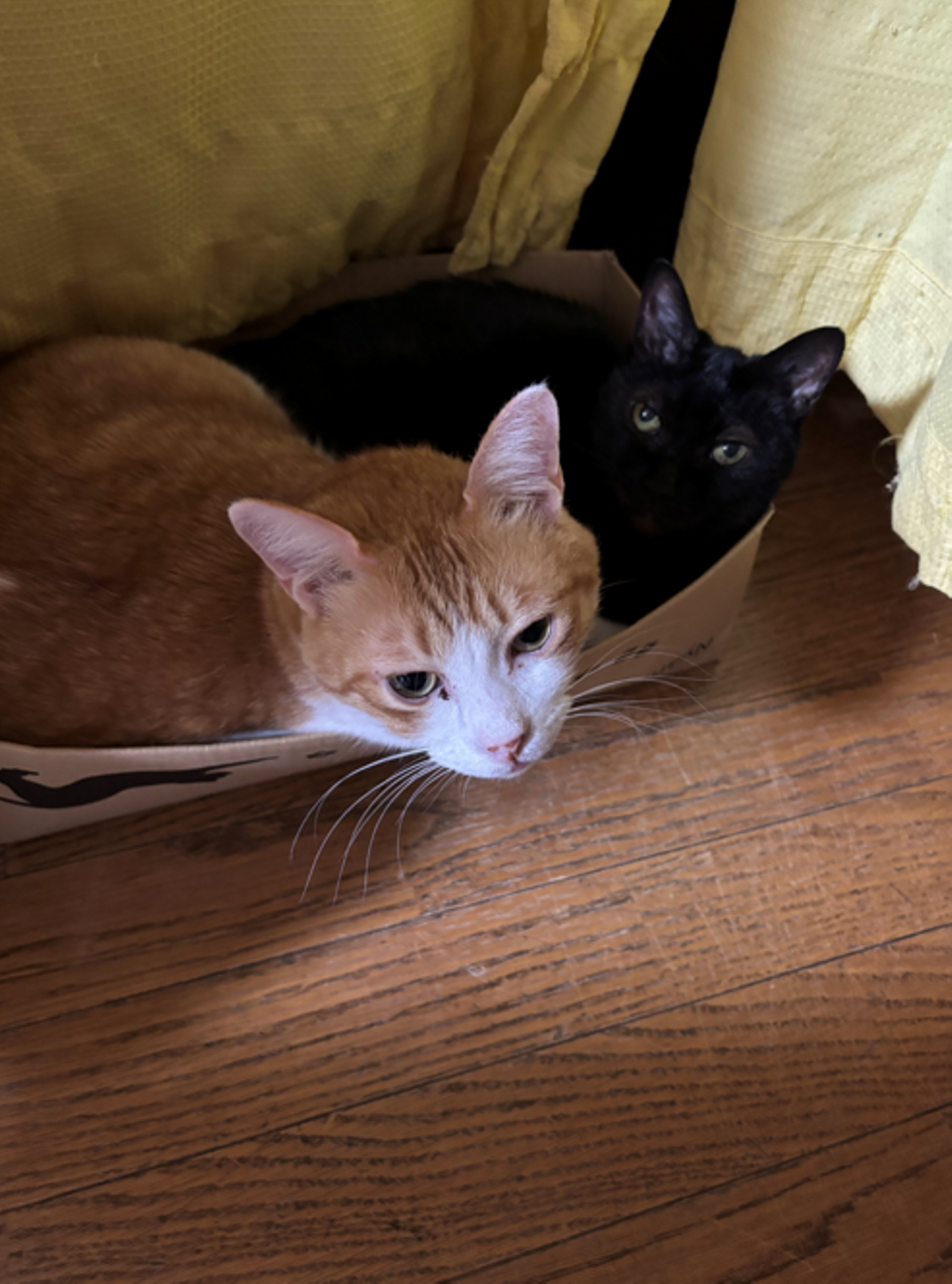 写真の茶白猫が「きなこ」、黒猫が「ネネ」です。