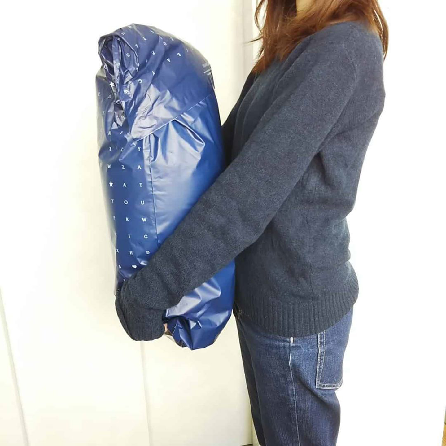 抱き枕くらいの大きさまで、宅配袋に入れてお届けしています!※大きな抱き枕やお布団、複数の商品をご注文の場合は段ボールでのお届けになってしまいます。