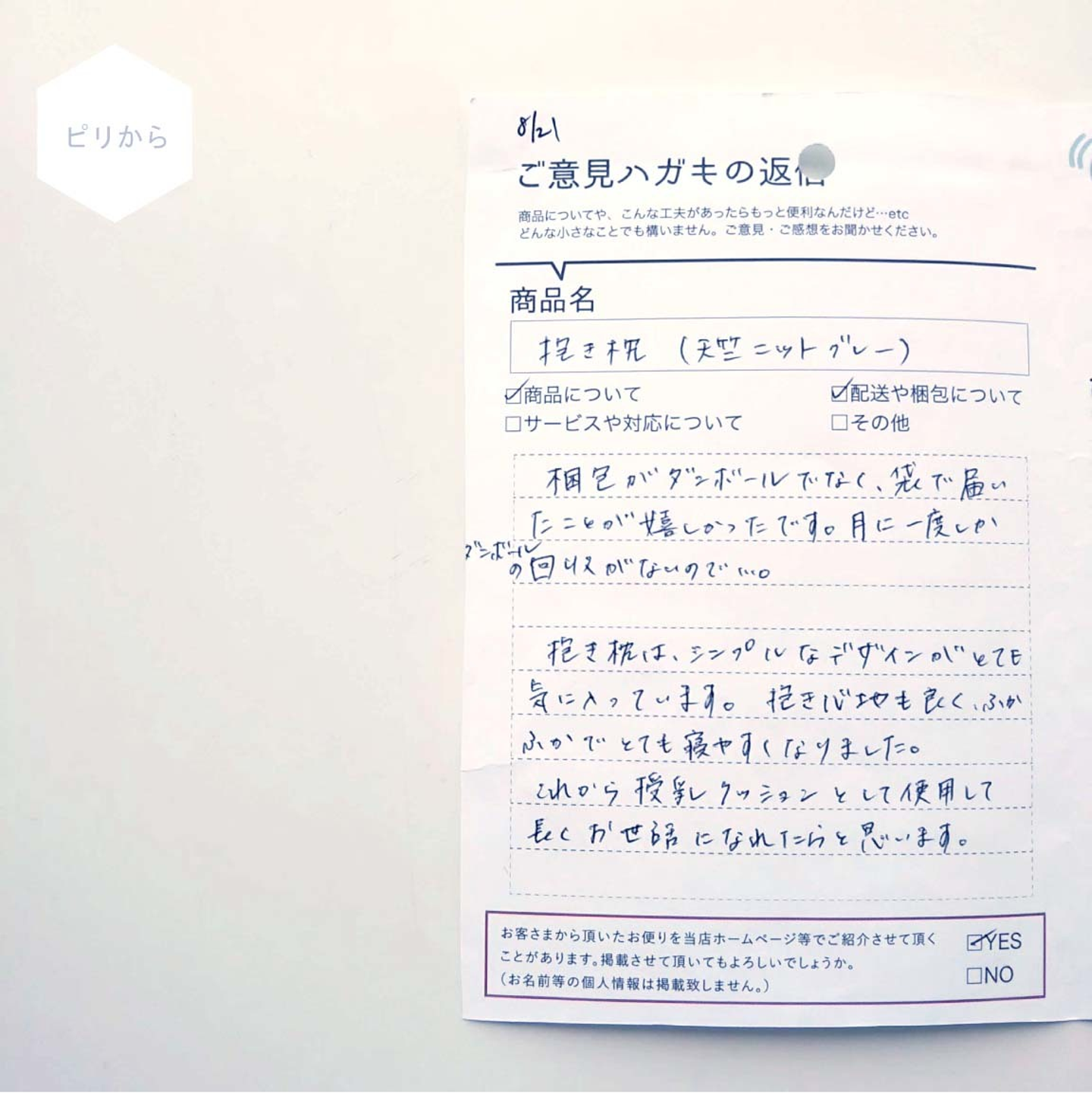 お届けサイズはこんな感じです。抱き枕がギュッとコンパクトに収まっています。ママに寄り添う気持ちもギュッと詰め込んでお届けしております。