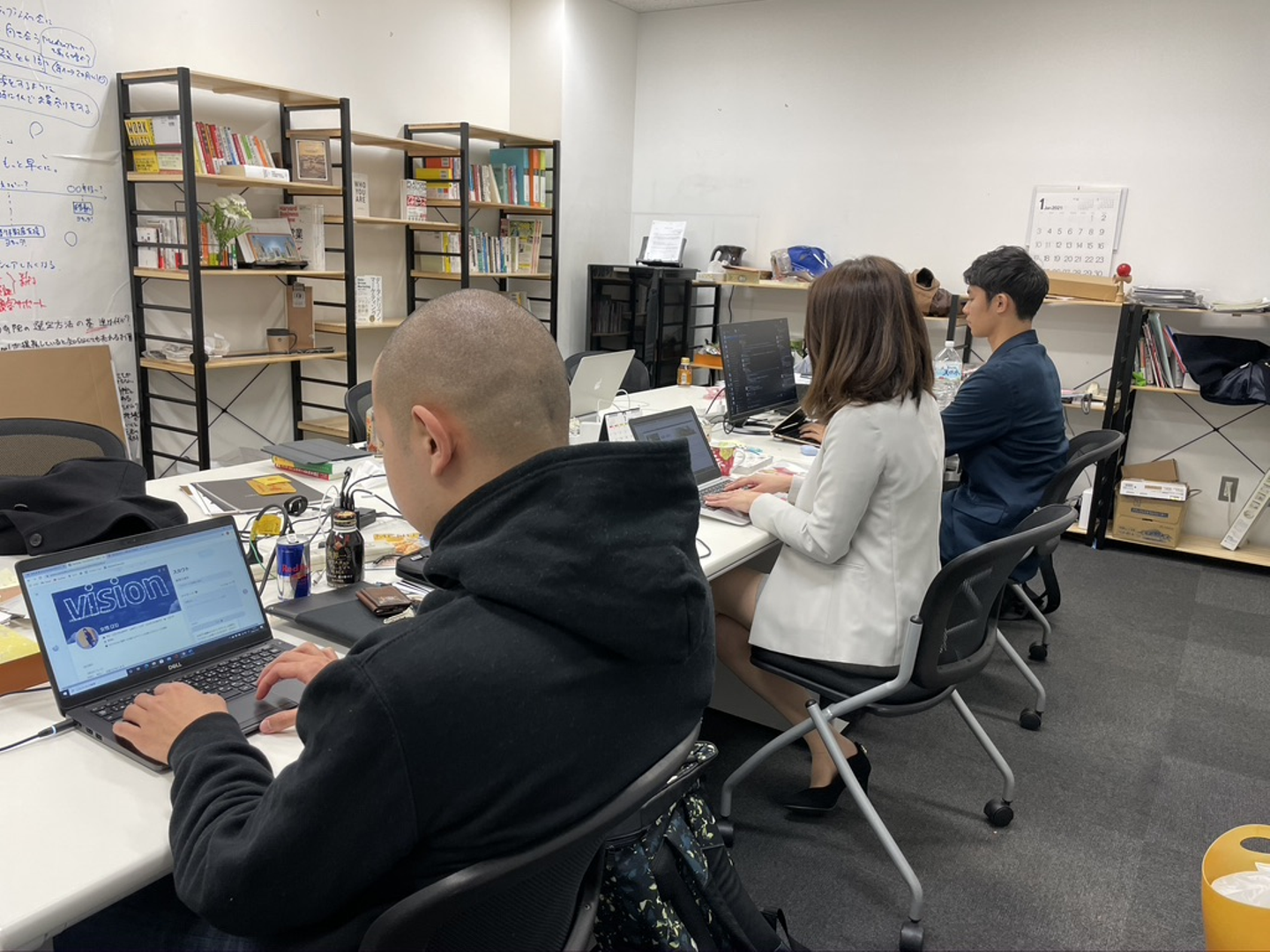 いつかでっかいオフィスに行ってやるぞという野心がビシビシ伝わってくる背中ですね。