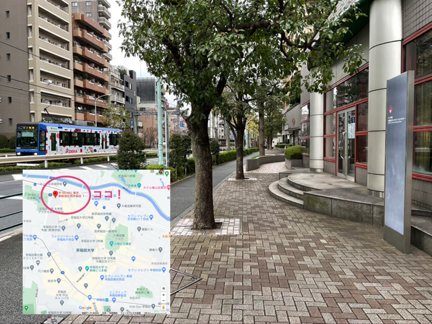 まず、場所です!早稲田大学インキュベーションセンターは、早稲田大学早稲田キャンパスに隣接しており、都電早稲田駅から程近い広々としたエリアに位置しています。