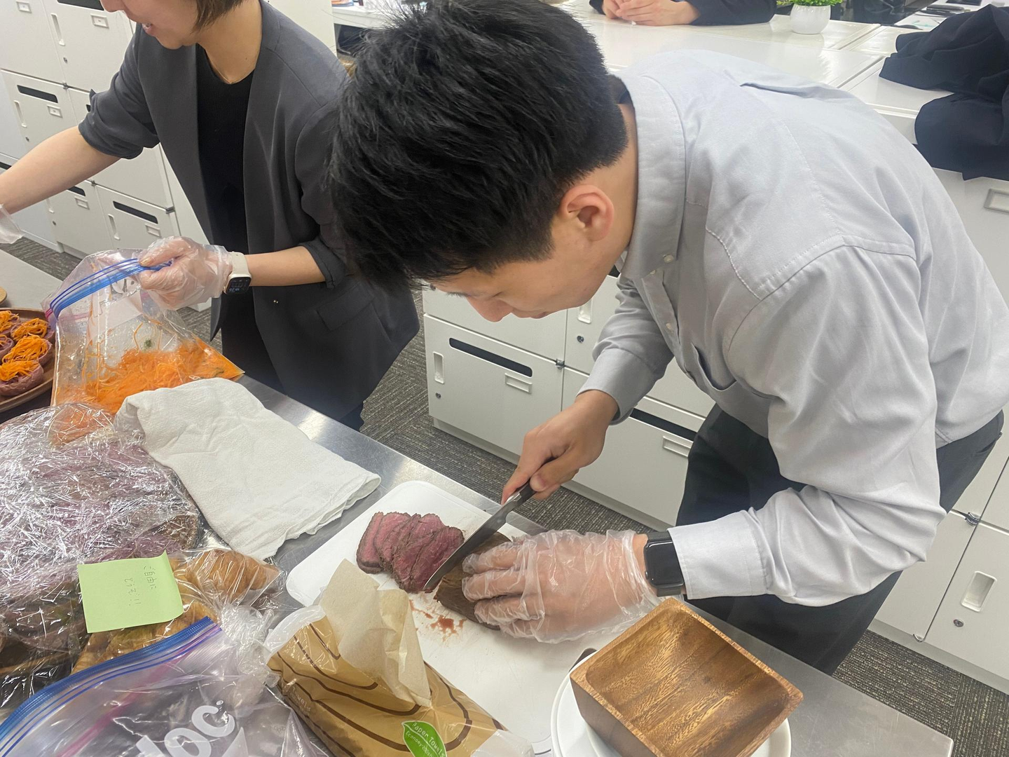 元シェフであるセールスメンバーが自慢のローストビーフに腕を振るいます。