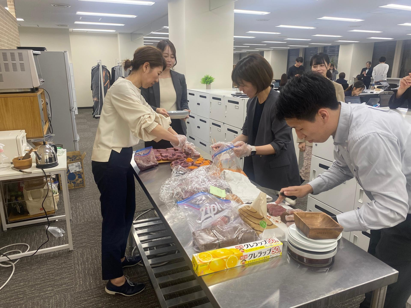 この日の東京本社では総会後のフリータイムで、スタイルブレッド自慢の商品「パン・オ・ルージュ」を使用した、セールスメンバーお手製『スペシャルローストビーフサンド』が振る舞われました!!