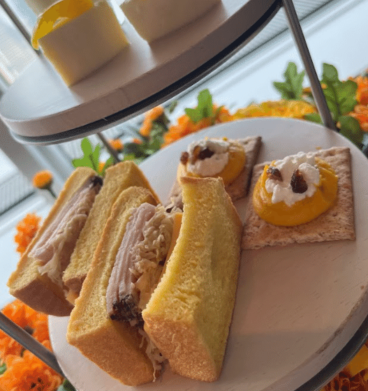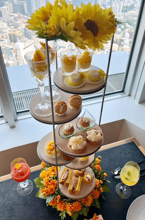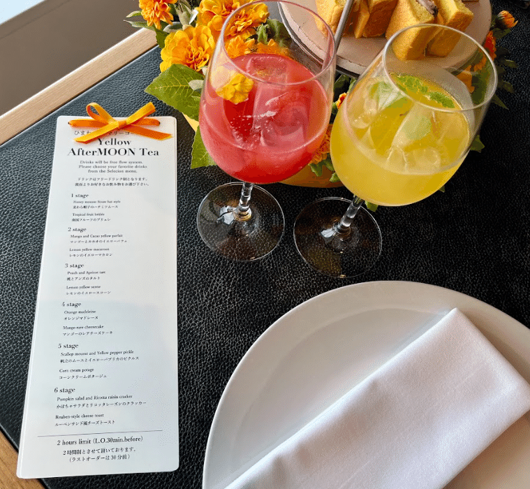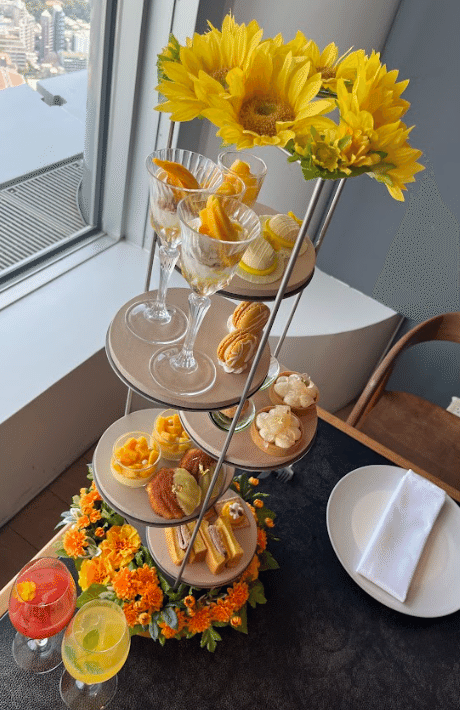 ランチやディナーもお楽しみいただけますが、今回は7月1日からスタートした『ひまわりtoマリーゴールドのYellow AfterMOON Tea』をいただきました。