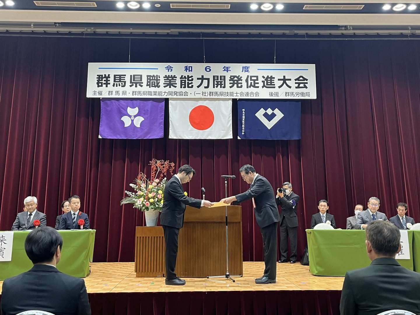 製造部門ではものづくりにおいてのスキルや品質向上に役立ち、営業・購買部門など製造部門以外でも商談に活用されていることが評価され「群馬県知事表彰の部、技能検定優良事業所」として表彰いただきました。