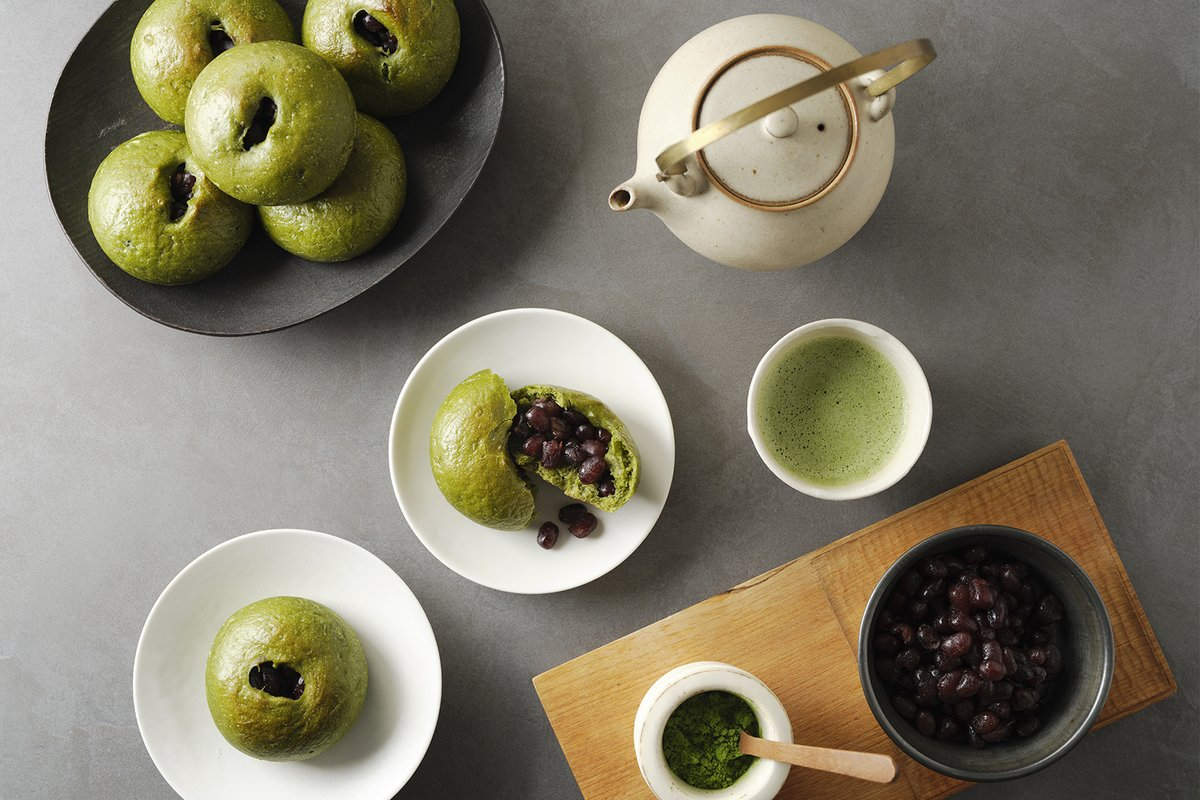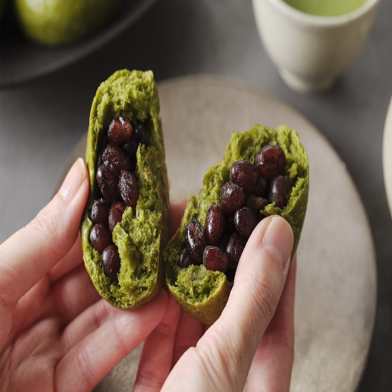 特長: パンの主役の1つである豆は、北海道産の大納言小豆。粒がつぶれないよう丁寧に釜へ投入し、豆の皮を残しふっくら炊きあげています。抹茶を加えたすっきりまろやかな生地で包むことで、大納言の上品な甘さを引き立てています。