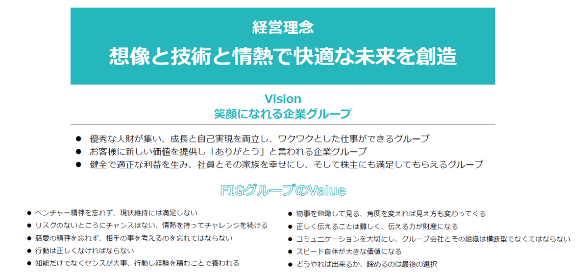 ・FIGグループの経営理念、ビジョン、バリューが、すばらしい!