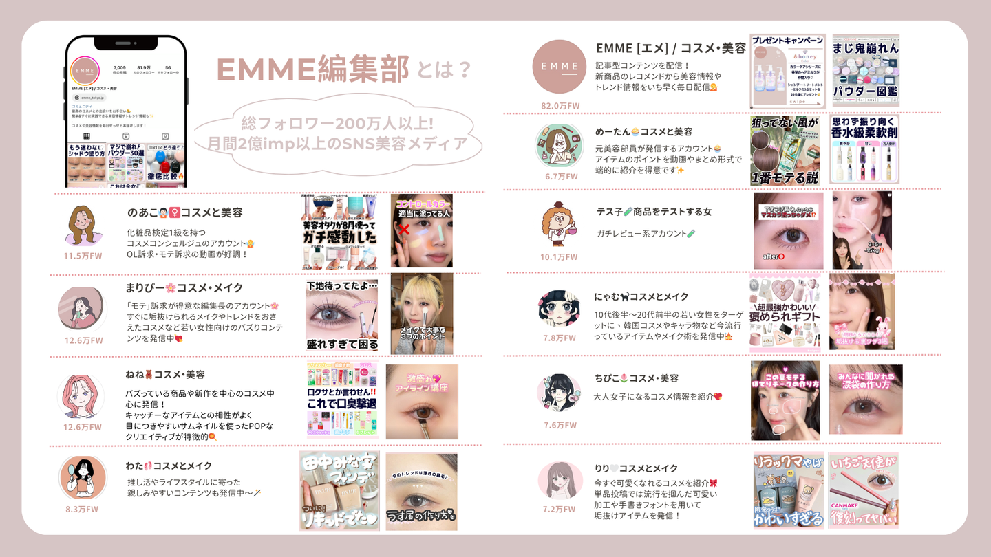 私たちが運営する「EMME」は、月間2億インプレッションを誇る日本最大級の美容メディアです。
