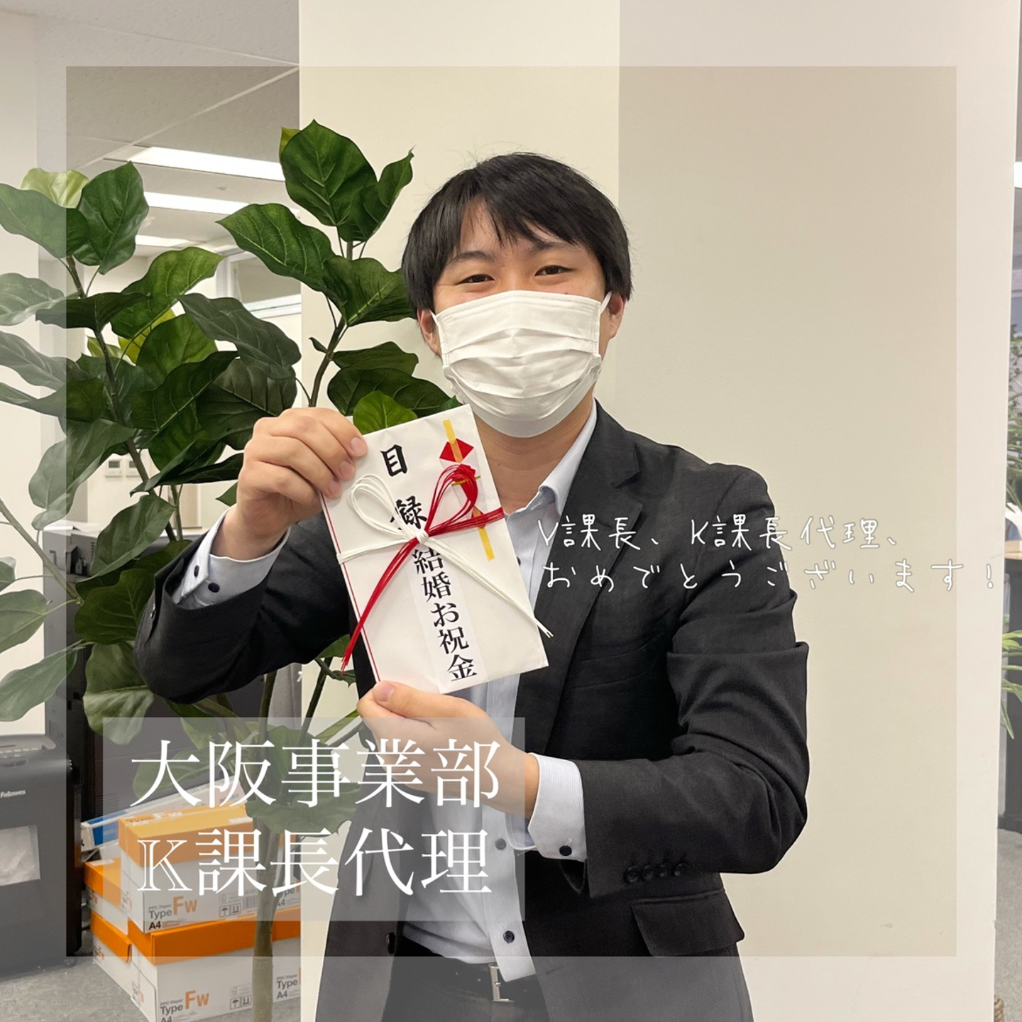 こちらは最近ご結婚されたK課長代理 結婚お祝い金授与されました!