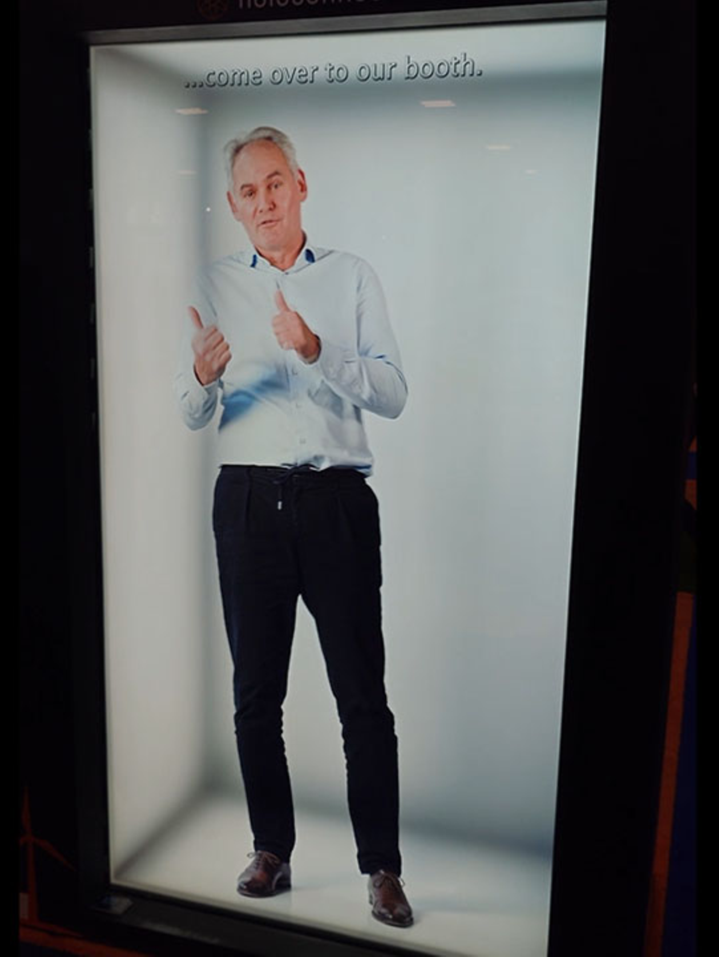 展示物では、ドロイドで商品の陳列を自動化する技術や3Dホログラムに注目しました。3DホログラムはAIが状況に合わせて最適な形で起動し、ユーザーの好みを学習して応答を調整、毎回ユニークな経験ができるよう設計されています。