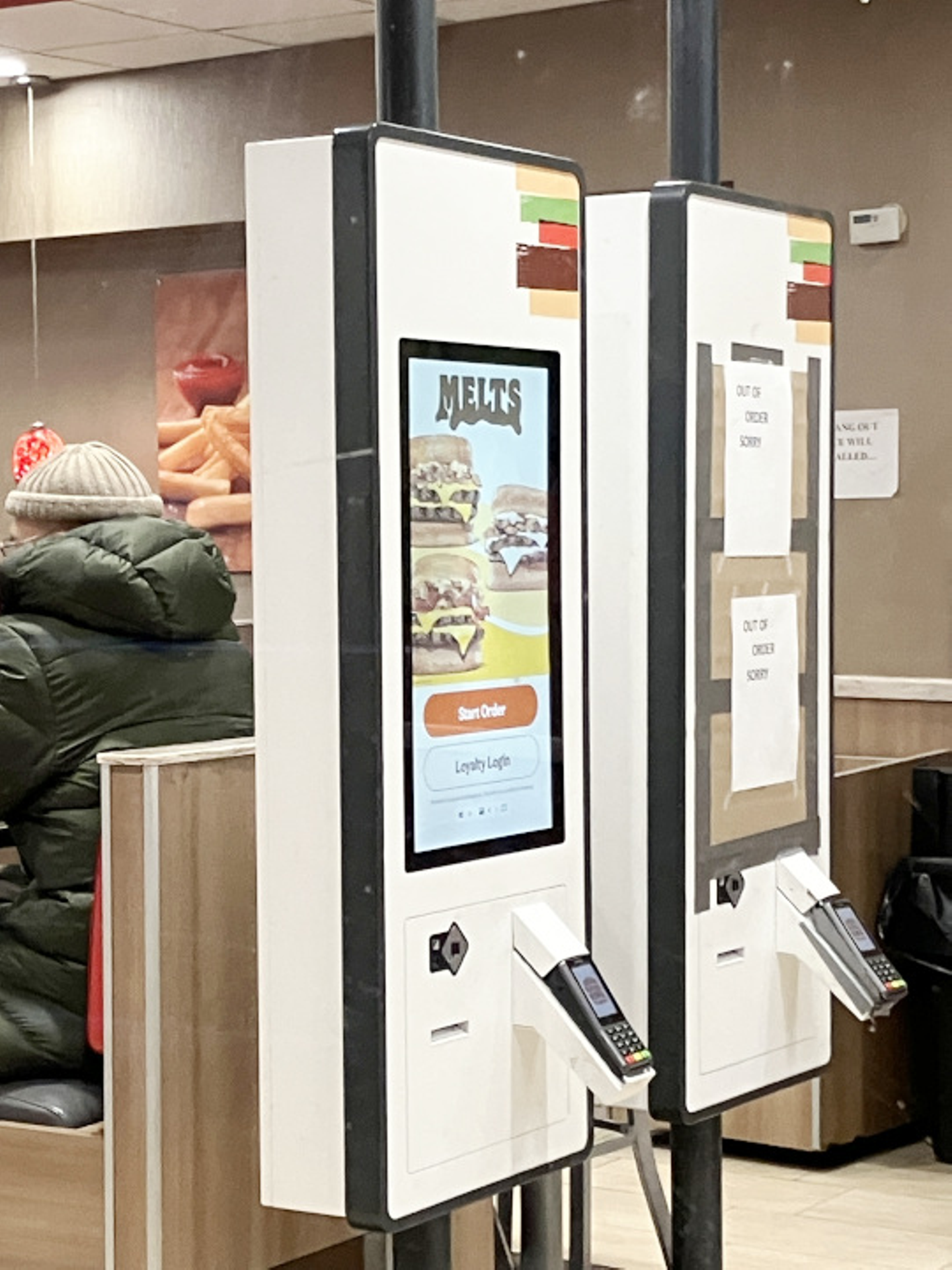 NRFの展示会場以外に、ニューヨークの小売やファストフード店など流通関係の状況も視察してきました。小売店舗クルーのスキルレベルが低下してワークスケジュール管理と同様、セルフオーダー端末へのニーズも高まっていると聞いたので実際に見に行ったんです。