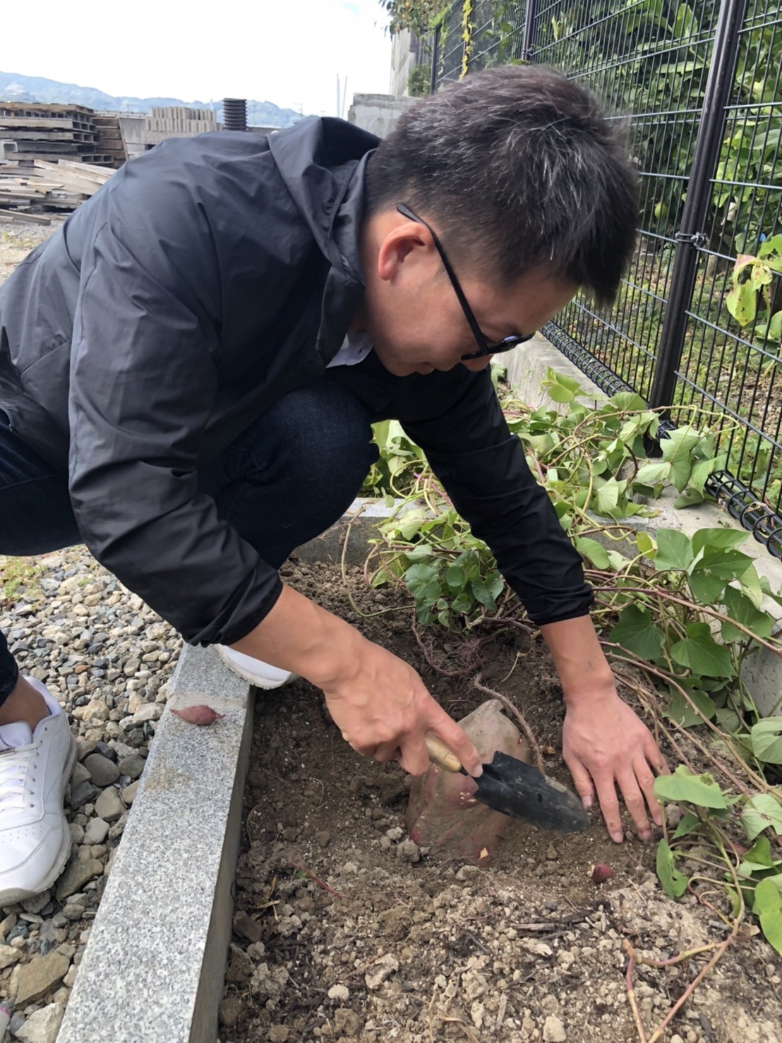 弊社の裏の資材置き場の隅にある農園でサツマイモの収穫を行いました。