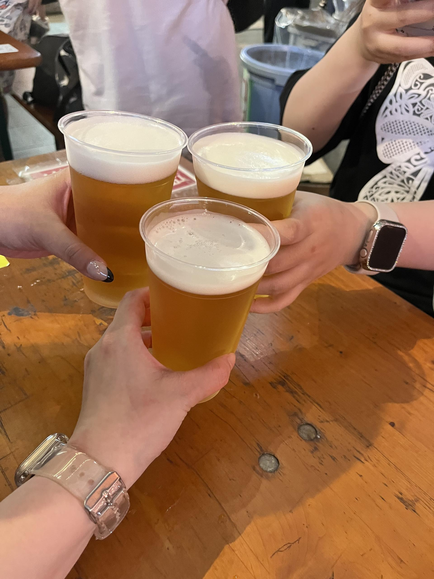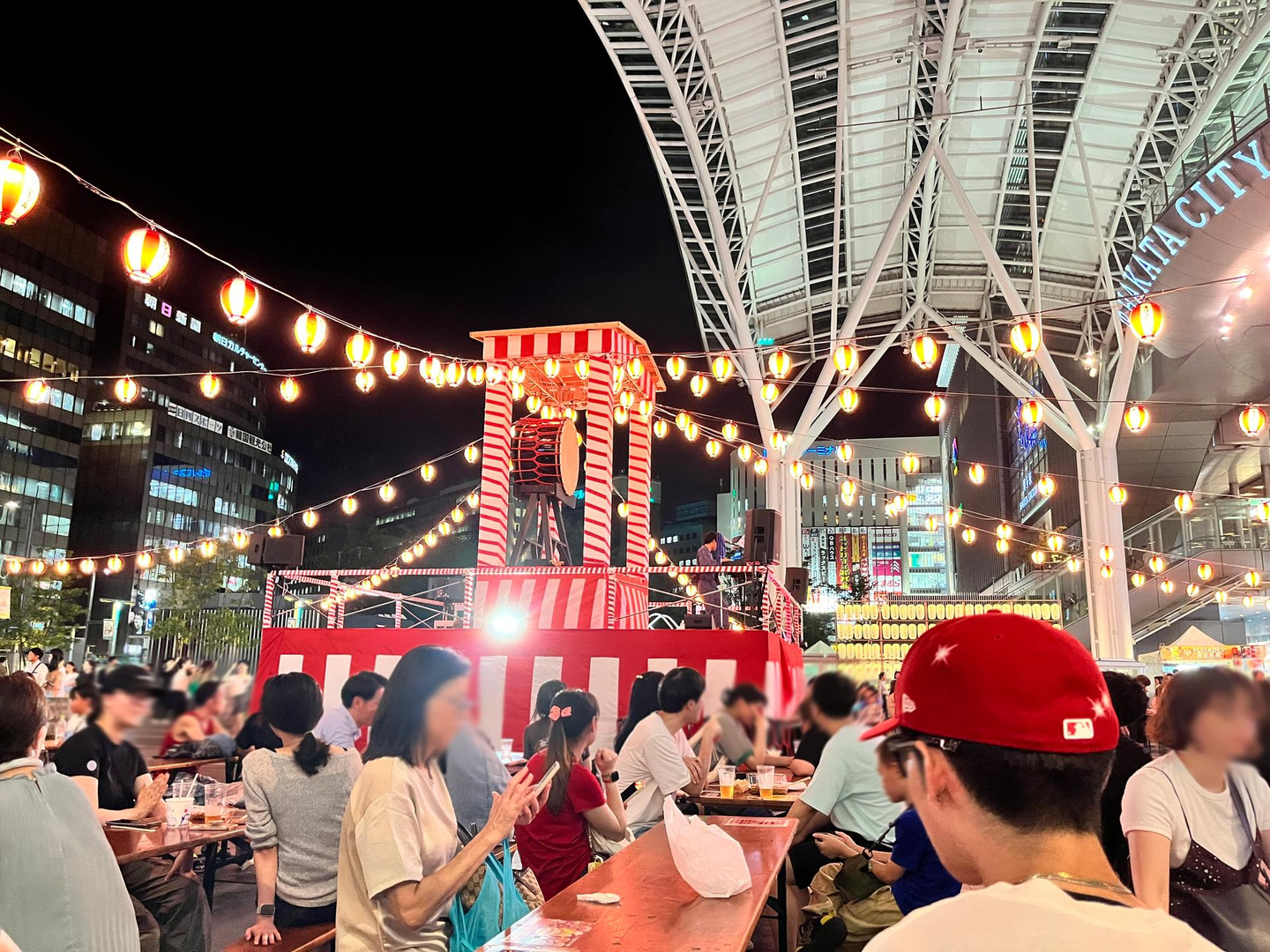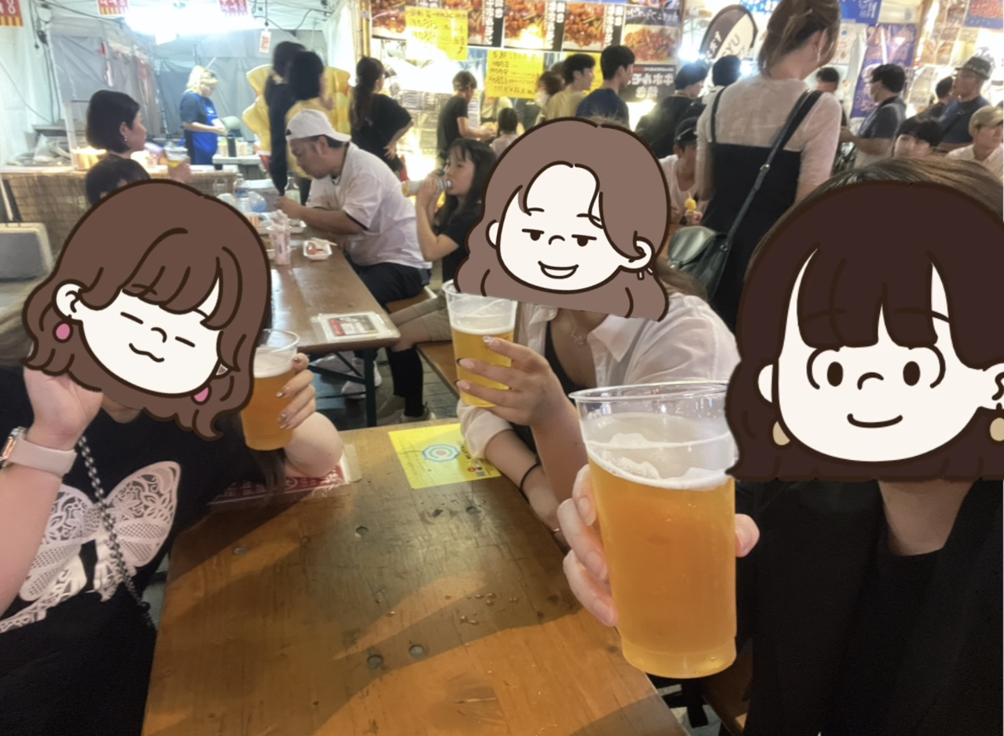 お祭りの熱気や活気が溢れる中で、ビールを手にしながら、今日1日の出来事や仕事の進捗について語り合いました。