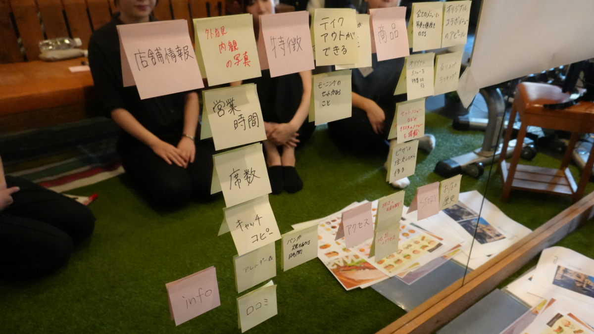 今回は下北沢にあるカフェ併設のパン屋さんのサイトを題材にして、「このサイトは誰に、何を伝えたいのか?」を各グループで話し合って貰いました。