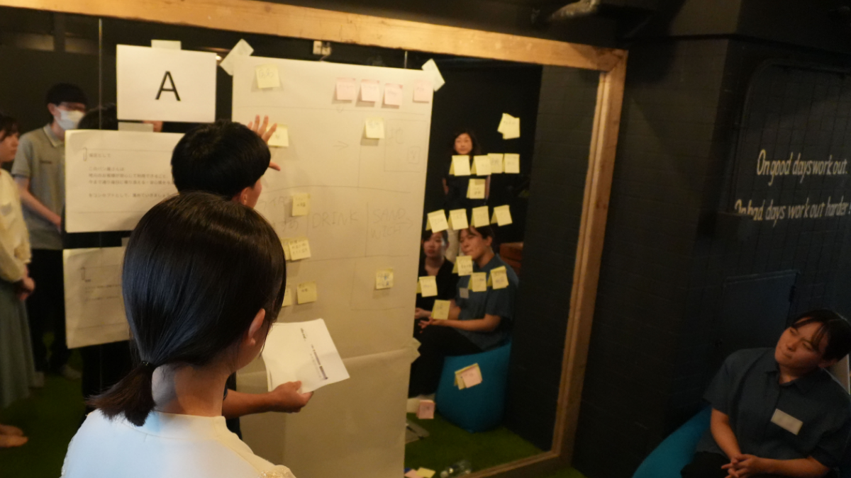 思いつく限りの内容を付箋に書き出して、鏡にペタペタと貼りながら話し合い。