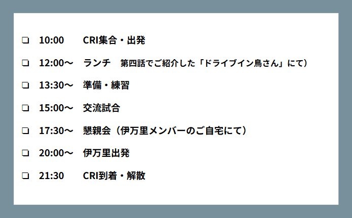 プロジェクトストーリー「第六話」は、レクリエーションということでCRIメンバーはもちろん、一緒に働く伊万里市の皆さんとの交流も兼ねた「野球大会」と「懇親会」の様子をお届けします!