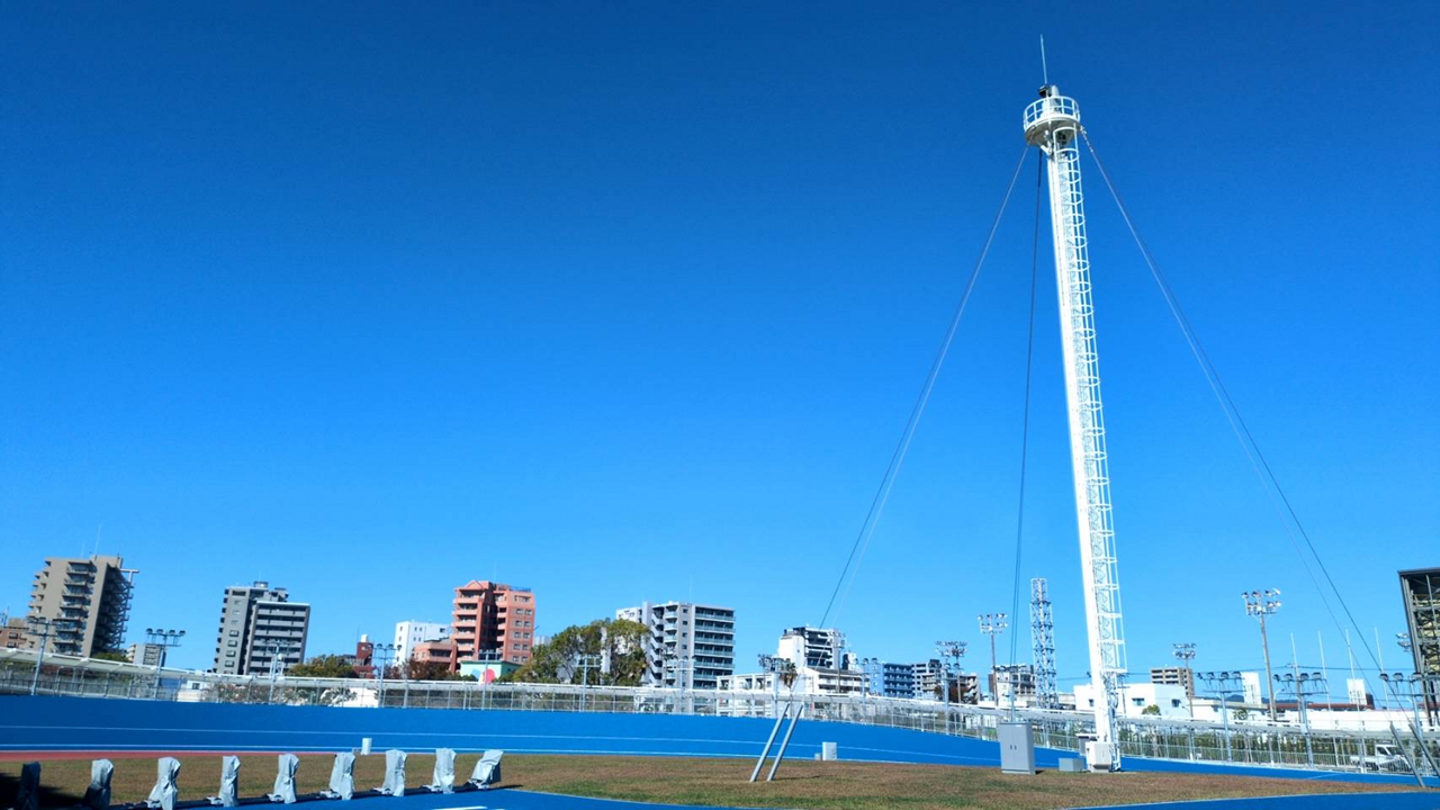 ポール頂上に設置されたカメラは360度ぐるぐると回転し、スタートからゴールまでの