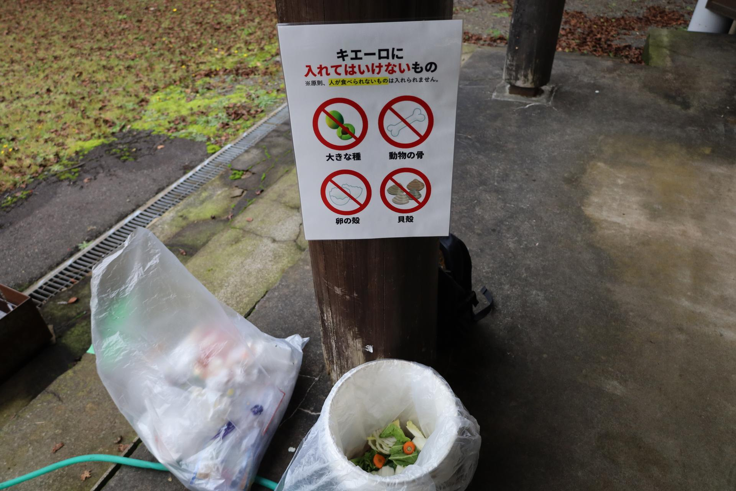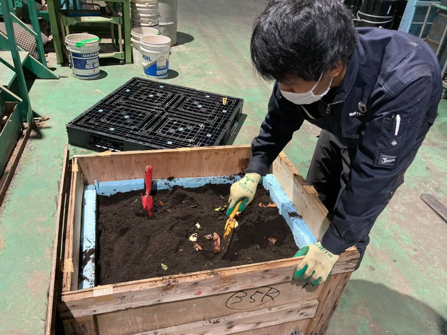 当日はゴミを減らす工夫もしました。社内メンバーが自発的に「キエーロ」を用意しました。キエーロとは、黒土中に含まれるバクテリアの力を利用し生ごみを分解し消滅させる生ごみ処理機です。当日は生ゴミと燃えるゴミを分別し、後ほど会社でキエーロに入れました。