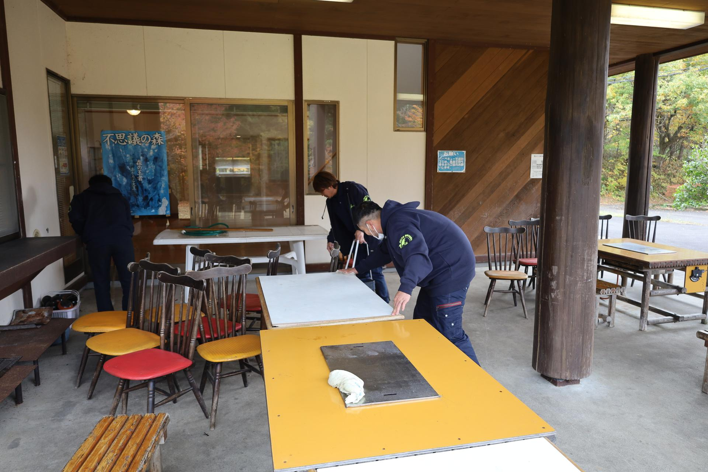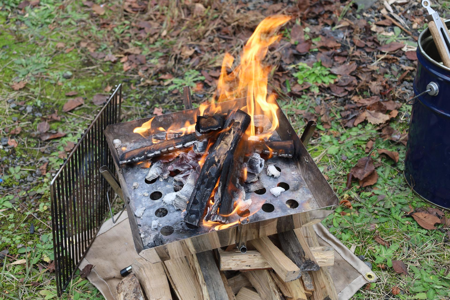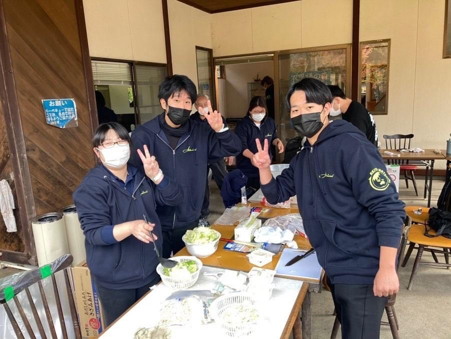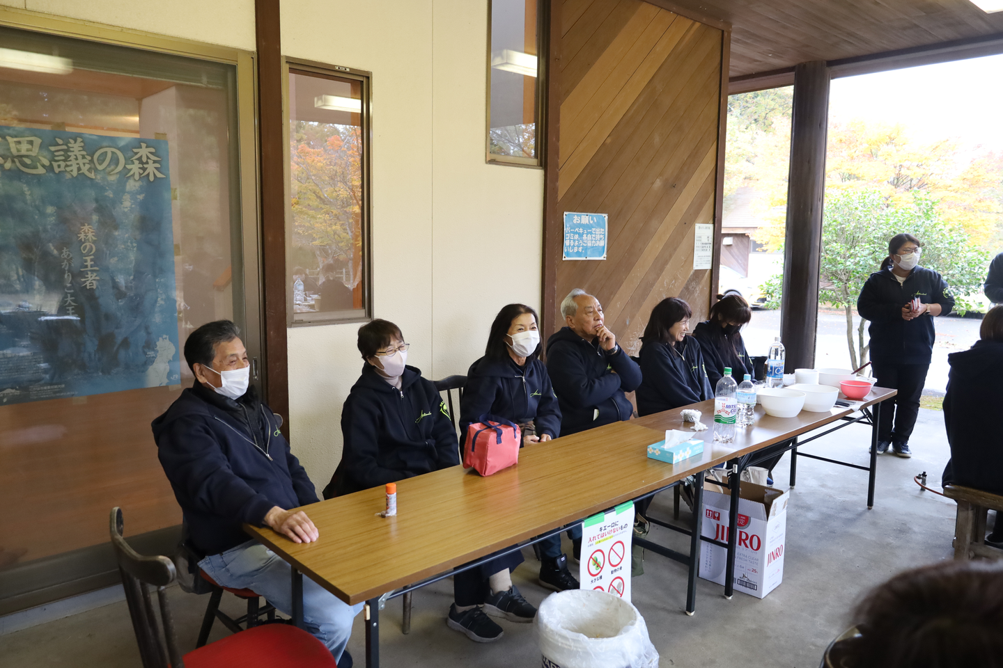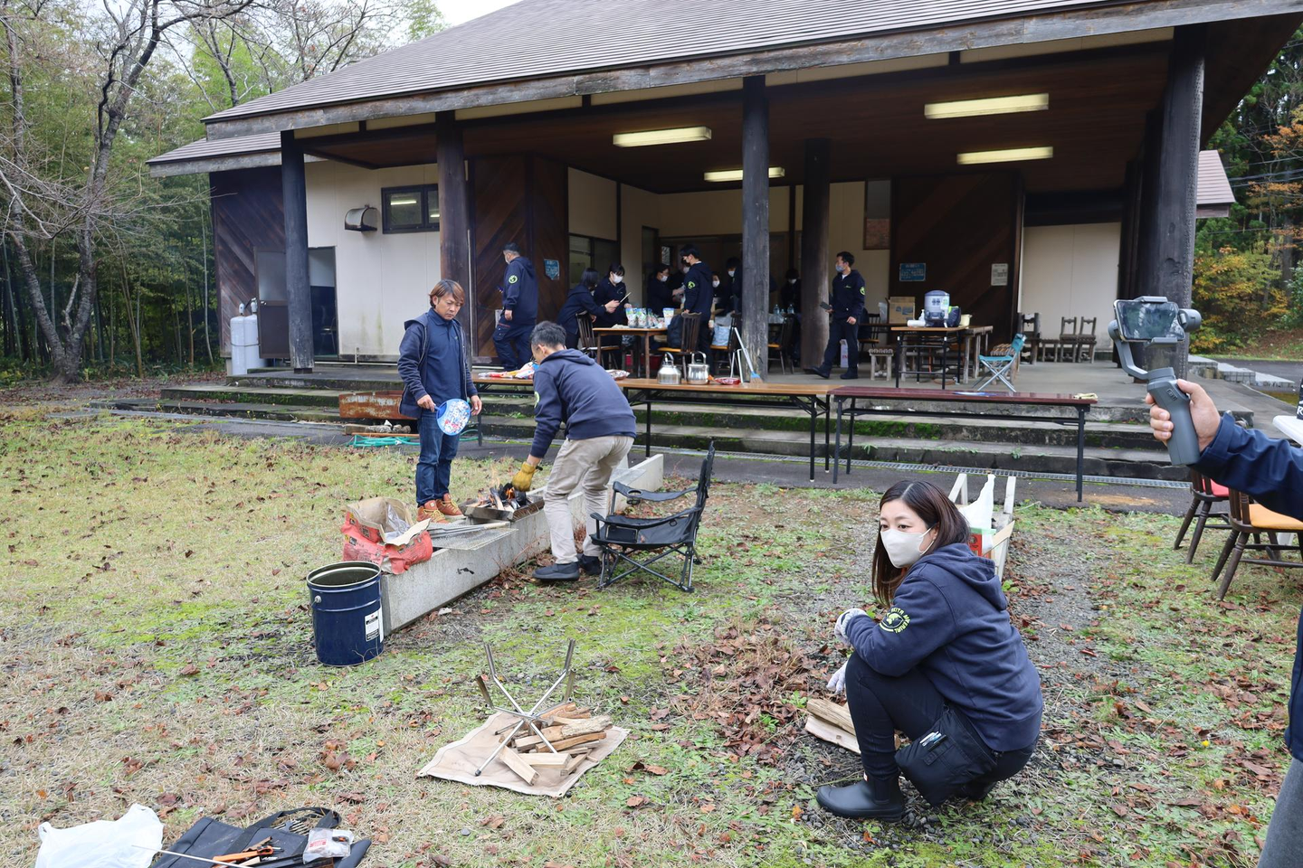 「環境を作るゾ!」チームは、机や椅子の準備だけでなく、火起こしや温かい飲み物などの準備をしました。入社してまだ1年経っていないキャンパーの社員が大活躍していました。同時に3つの火を管理していました…すごい!他の社員の皆さんも臨機応変に環境づくりをしてくださいました。