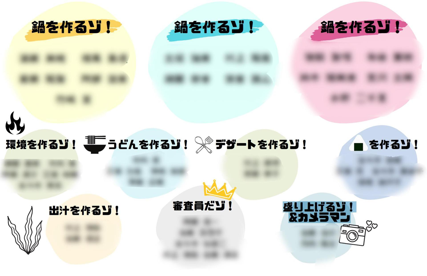 なべっこ遠足では、チームに分かれて活動しました。全部で10チーム。ちなみに「鍋を作るゾ!」チームは、新卒メンバーと10〜20代の若手社員によるチームで全部で3チームです。