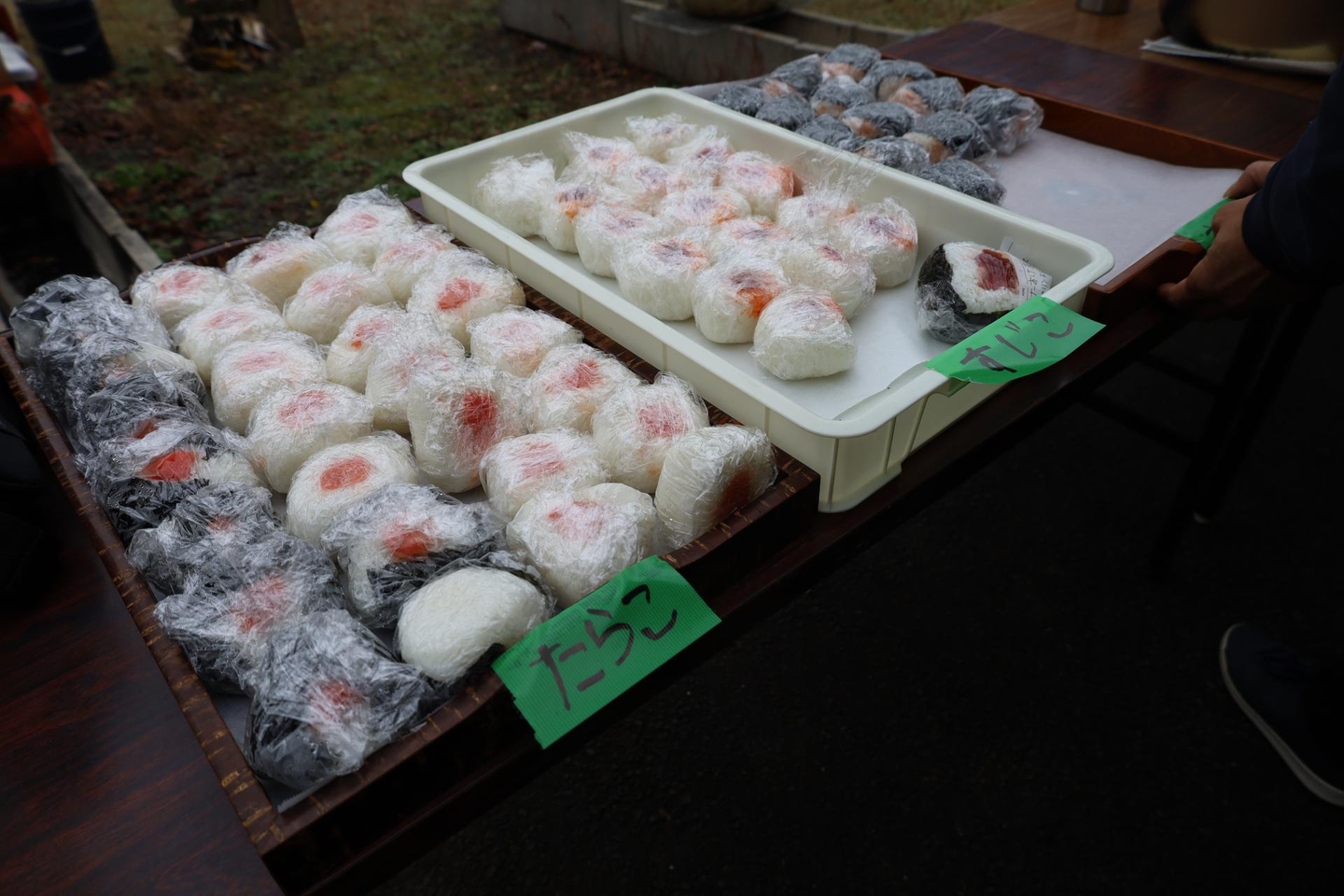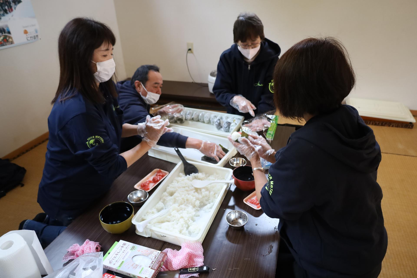 「おにぎりをを作るゾ!」チームは、さすがの手際の良さでした。当日のお米はデビューしたての「サキホコレ」。愛情のこもったおにぎりは大人気でした!