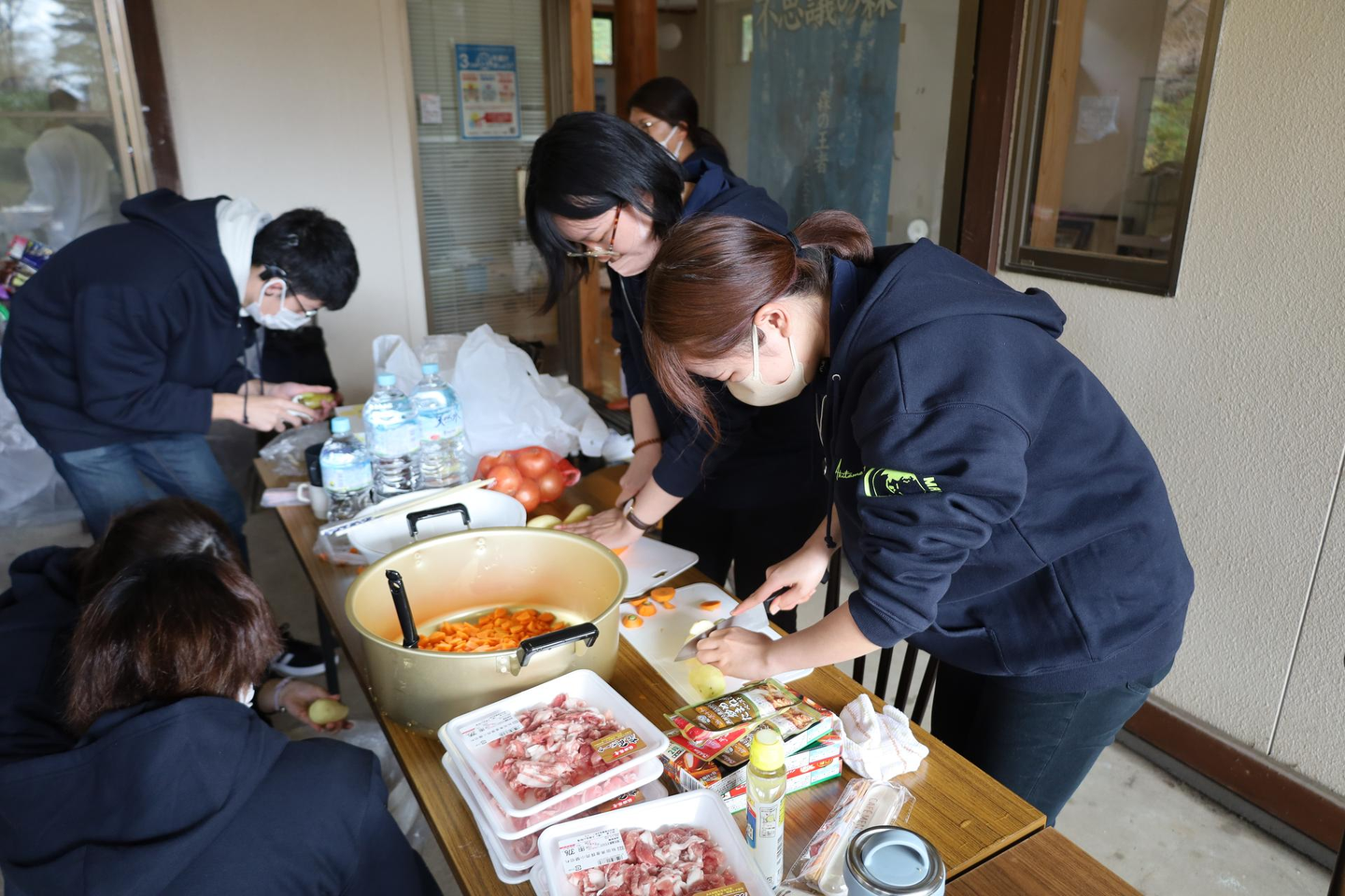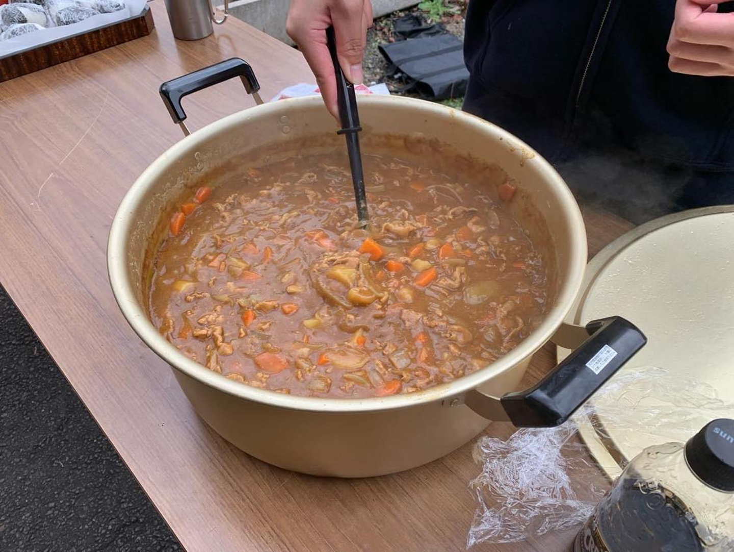 「鍋を作るゾ!」の各チームが作った鍋は、鳥塩なべ、カレー、豚汁の3つです。みんな協力してそれぞれの鍋を作っていました。